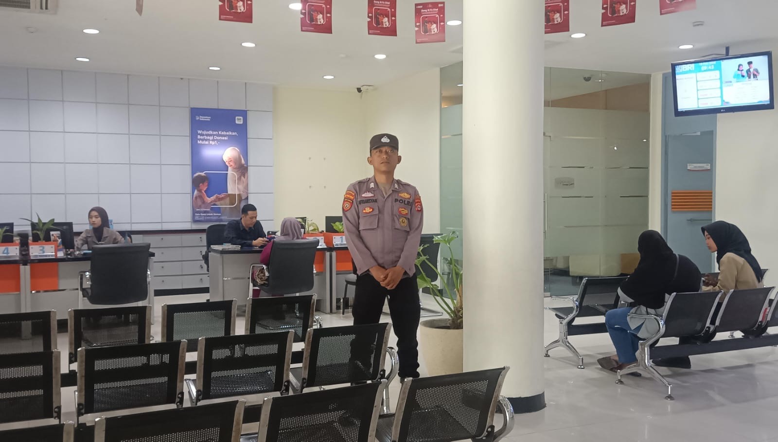 Iptu sulis mengecek anggota jaga bank