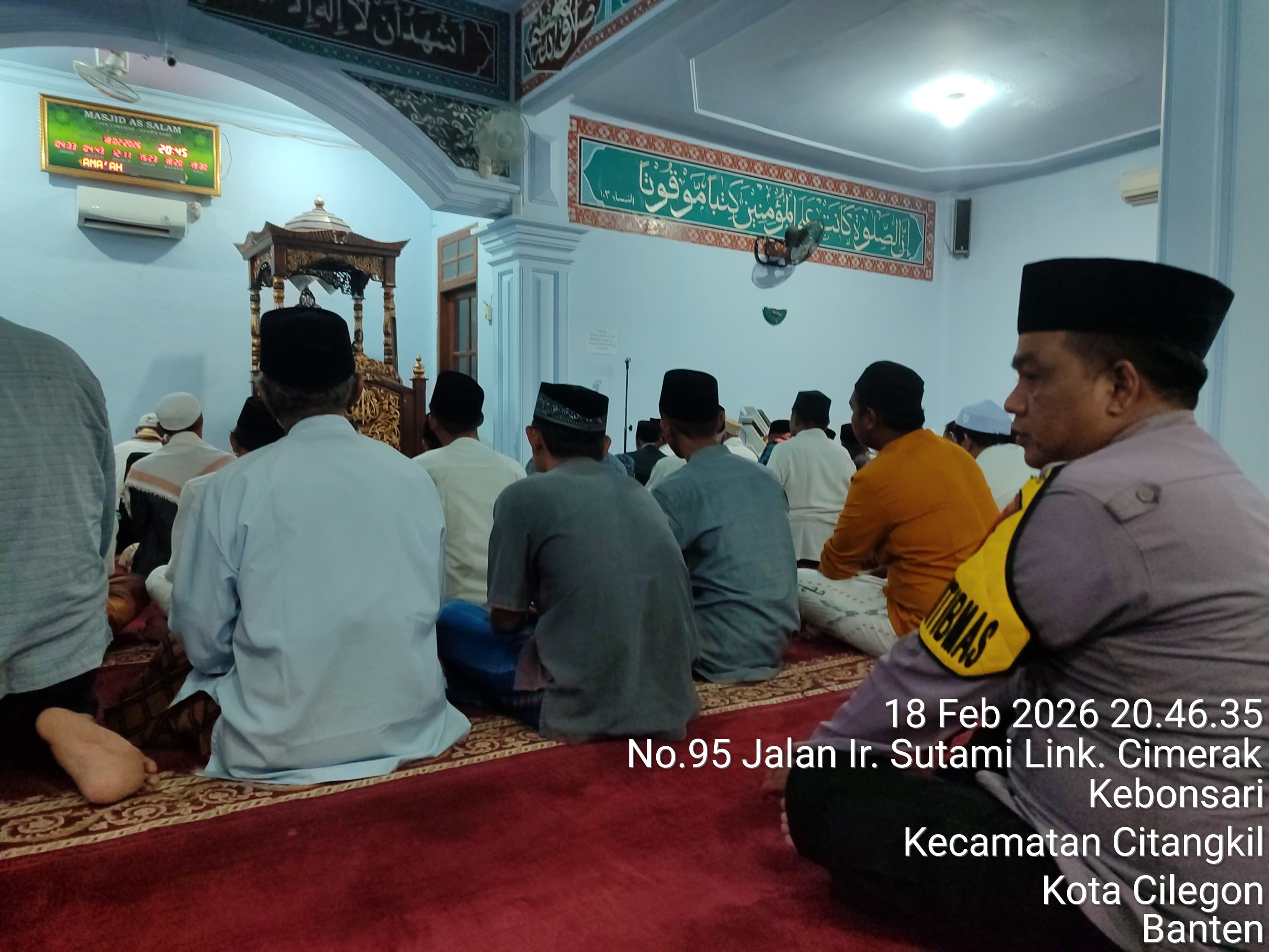 Mancak ~ Personil Bhabinkamtibmas Desa Labuhan Bripka Juhardi Polsek Mancak Polres Cilegon Melaksanakan Sholat Subuh Keliling di wilayah binaanya di Masjid Nurul Ikhlas Desa Sangiang Kecamatan Mancak Kab Serang SELASA, 24/02/2026  Kapolres Cilegon AKBP Dr. Martua Raja Taripar Laut Silitonga, S.H., S.I.K., M.Si.Melalui Kapolsek Mancak Polres Cilegon AKP ACUM SUTRALIA mengatakan Melalui Sholat Subuh Personil Bhabinkamtibmas...