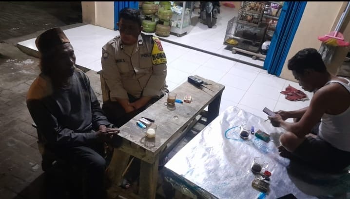 Personil Bhabinkamtibmas Aiptu Wawan setiabudi Polsek Purwakarta melakukan kunjungan menyapa warga di Lingkungan Pansepan, Kelurahan Tegal Bunder, Kecamatan Purwakarta, Kota Cilegon pada malam harI