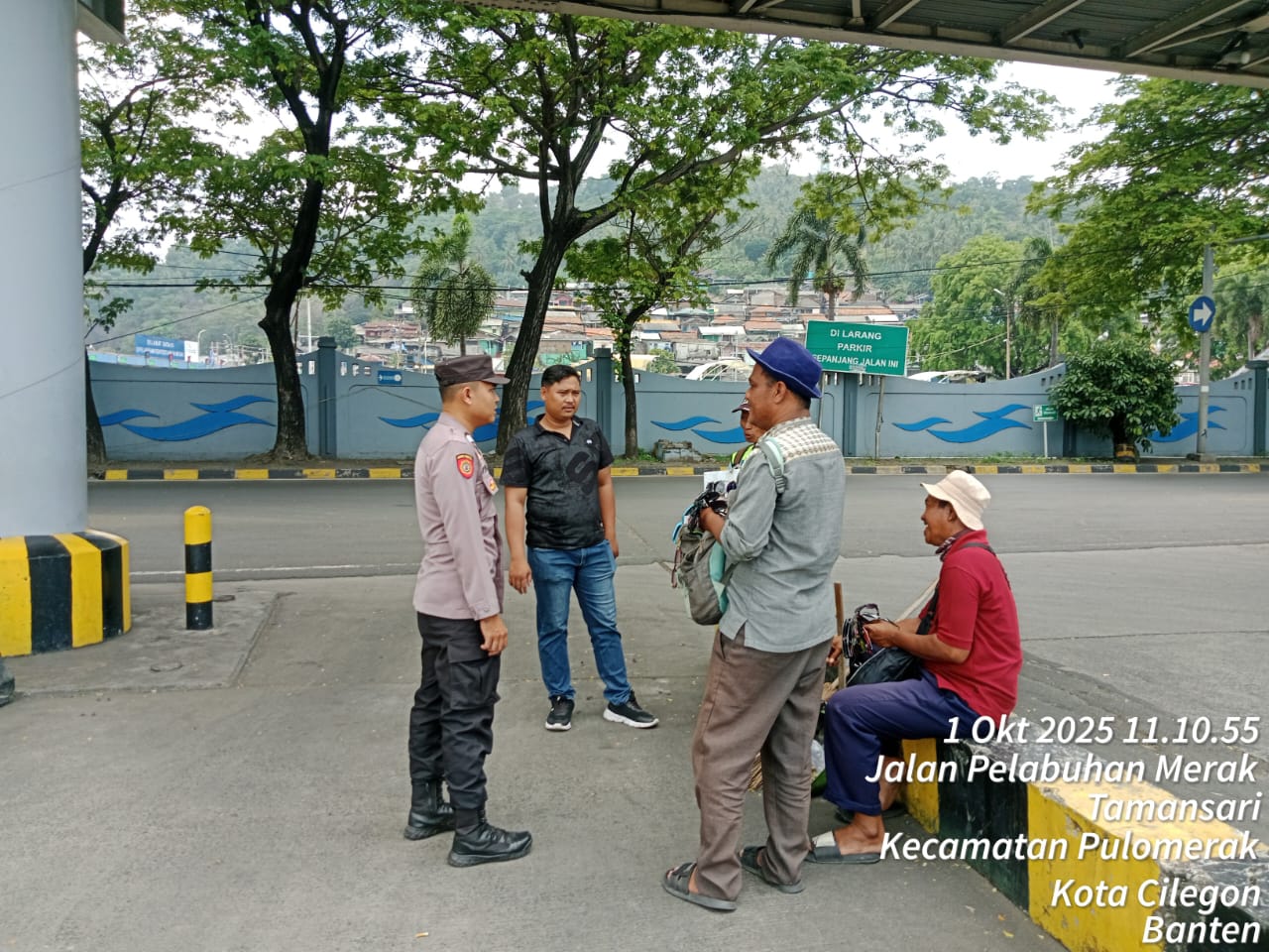 Cilegon - Personel Polsek Kskp Merak Polres Cilegon Polda Banten melaksanakan sambang dan patroli kawasan pelabuhan merak dalam rangka menjaga Harkamtibmas di Kawasan Pelabuhan Merak, Rabu (01/10/2025).