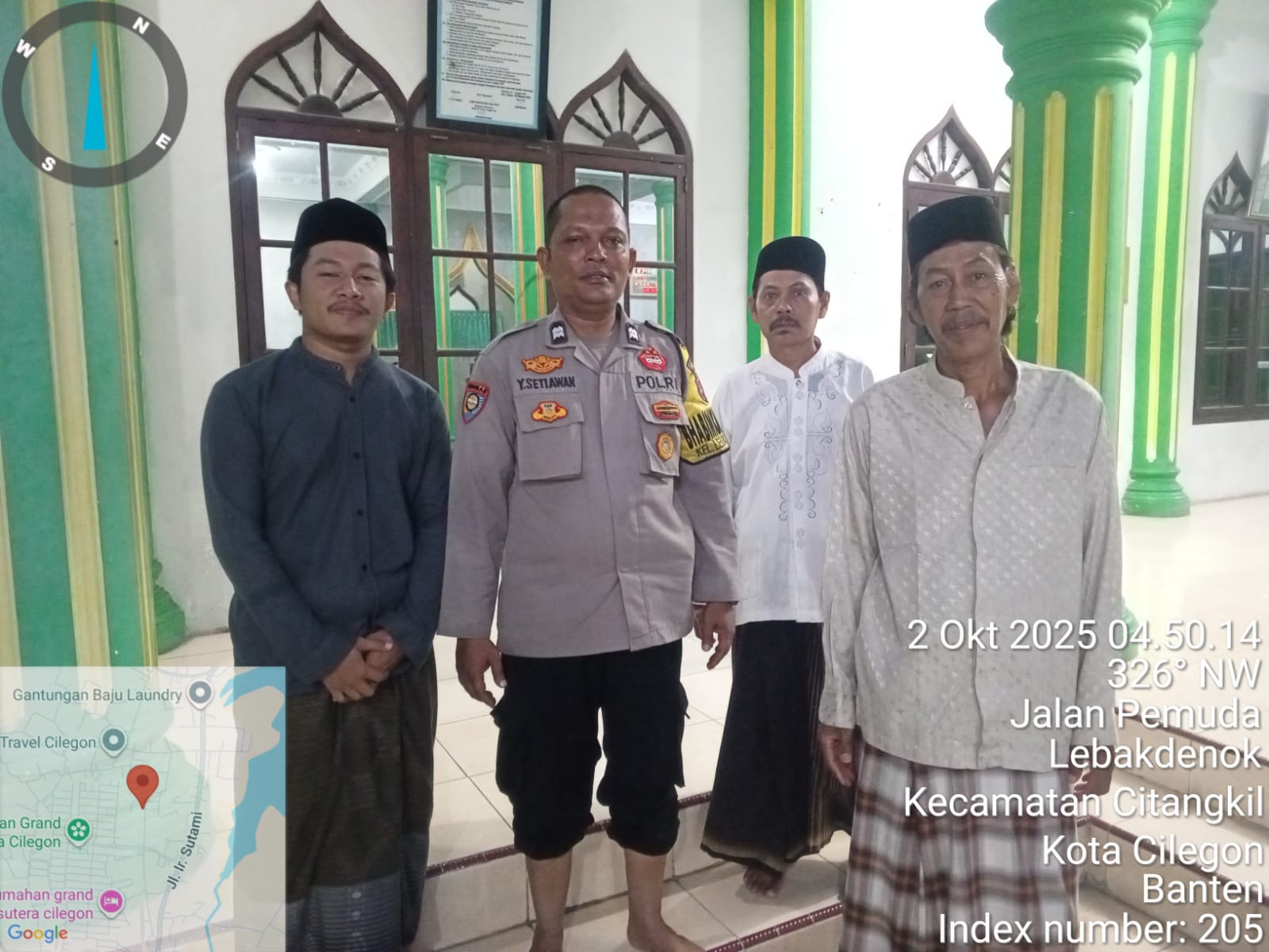 Cilegon - Guna memastikan Harkamtibmas tetap berlangsung aman kondusif,Bhabinkamtibmas Polsek Ciwandan Polres Cilegon Polda Banten menyambangi DKM pengurus Masjid Usai Sholat Berjama’ah,Kamis (02/10/2025).
