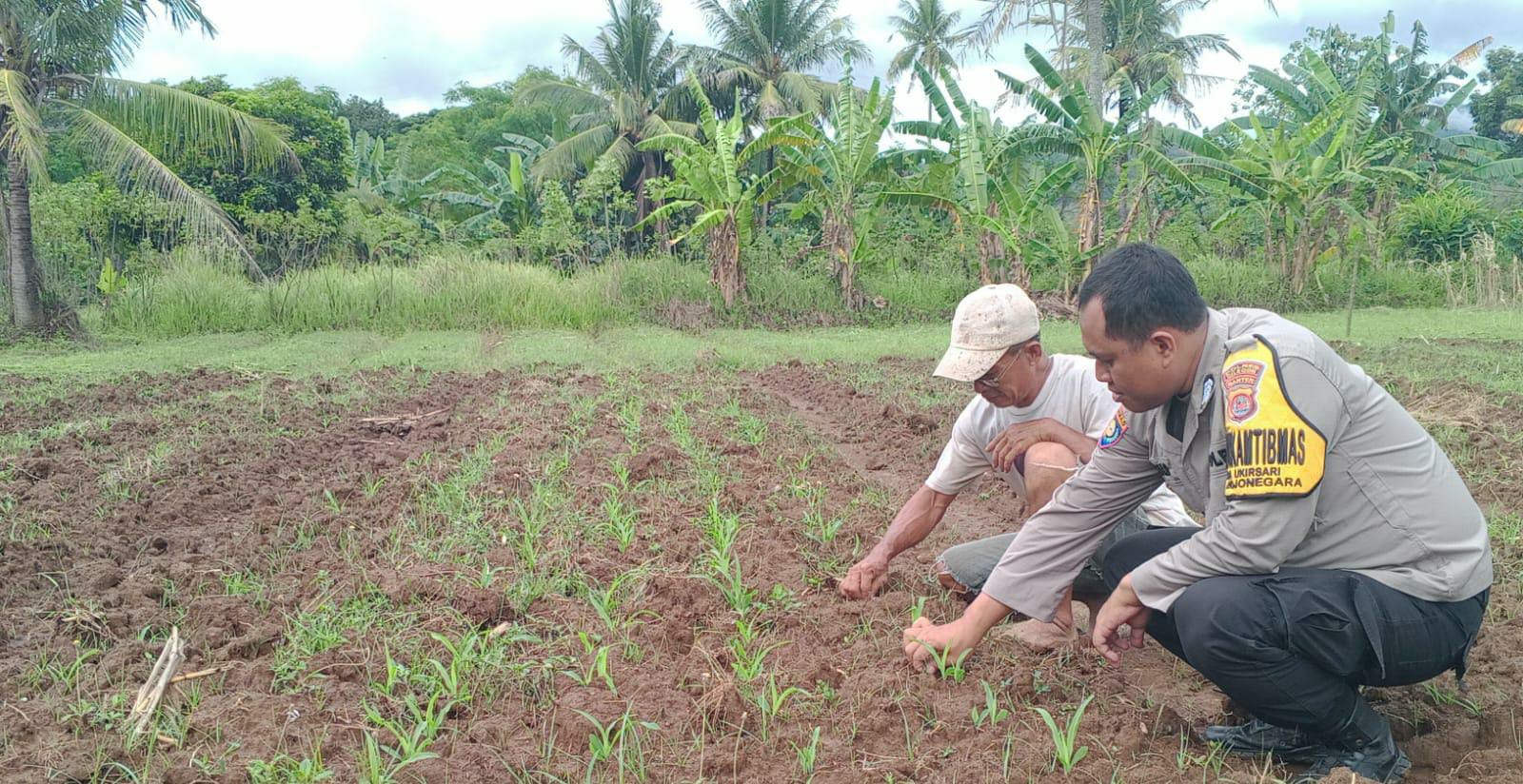 Dukung Ketahanan Pangan, Bripka Bambang dan Bripka Susilo Bhabinkamtibmas Sambangi Petani Musim Tanam Jagung Di Wilayah Bojonegara