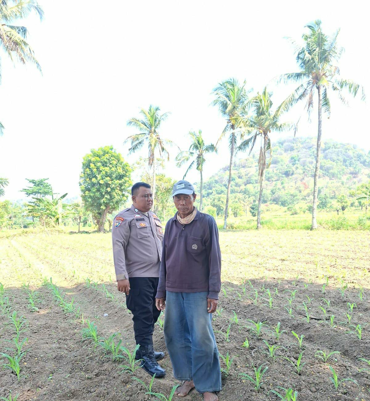 Bersama POKTAN, Bripka Tri Handoko Bhabinkamtibmas Polsek Bojonegara Cek Kondisi Lahan Jagung Guna Sukseskan Program Ketahanan Pangan