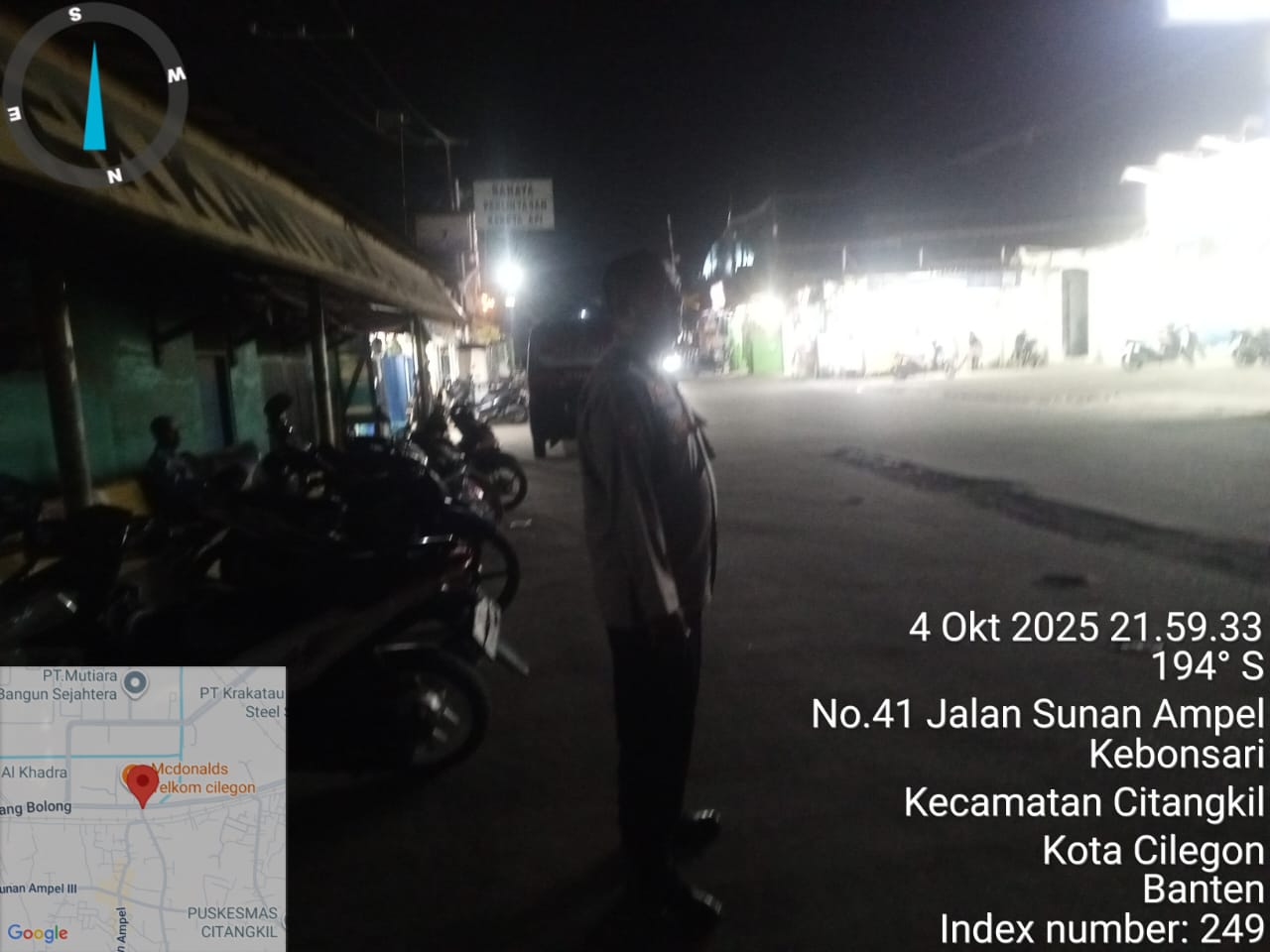 - Rute patroli meliputi Jl. Raya Citangkil, pemukiman, perumahan, kawasan industri, dan kawasan pergudangan.