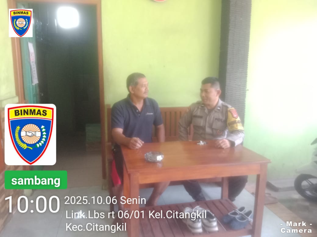 Cilegon - Bhabinkamtibmas Polsek Ciwandan Polres Cilegon Polda Banten Melalui Sambang Dialogis menjaga kamtibmas selalu kondusif dan aman serta untuk mengetahui situasi dan kondisi terkini yang ada di Daerah binaannya,Sekaligus sebagai sarana silaturahmi dengan berbagai elemen yang ada di masyarakat, Senin (06/10/2025).