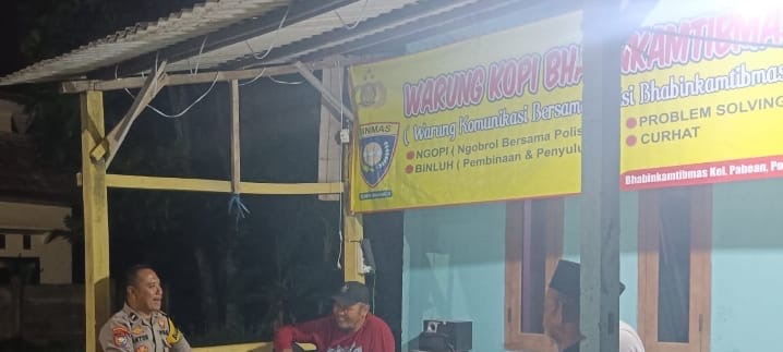Bhabinkamtibmas Aipda Anton sudrajat Ngobrol santai Menerima kunjungan Masyarakat malam hari santai ngobrol asik bersama warga mendengarkan keluh kesah Masyarakat di Warung Kopi