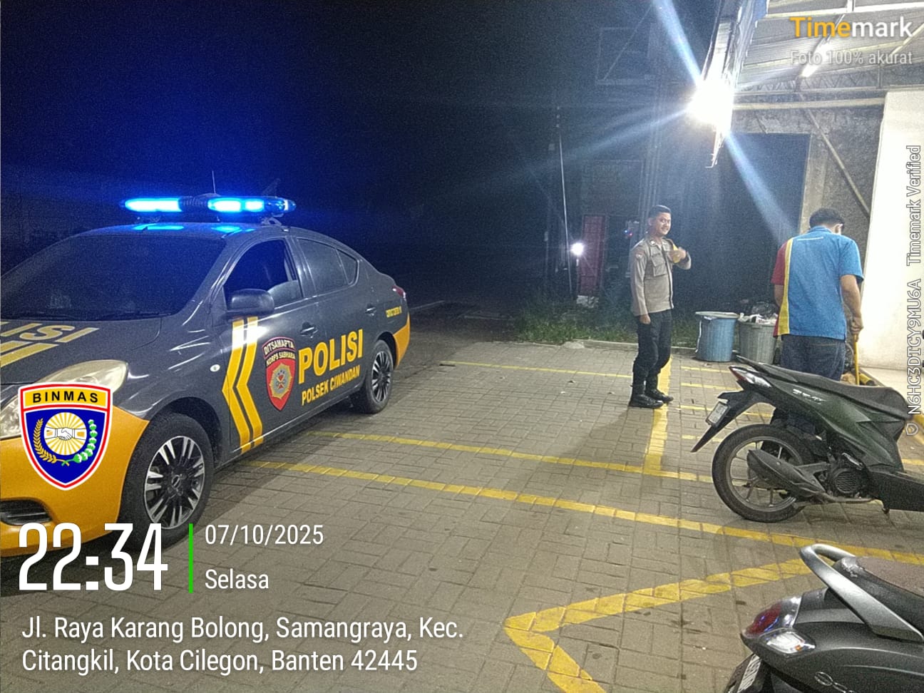 Cilegon - Personil Polsek Ciwandan Polres Cilegon Polda Banten melaksanakan patroli malam untuk mengantisipasi potensi kejahatan, khususnya pembobolan minimarket, di daerah hukum Polsek Ciwandan. Kegiatan ini bertujuan untuk meningkatkan keamanan dan memberikan rasa aman kepada masyarakat, Rabu (08/10/2025).