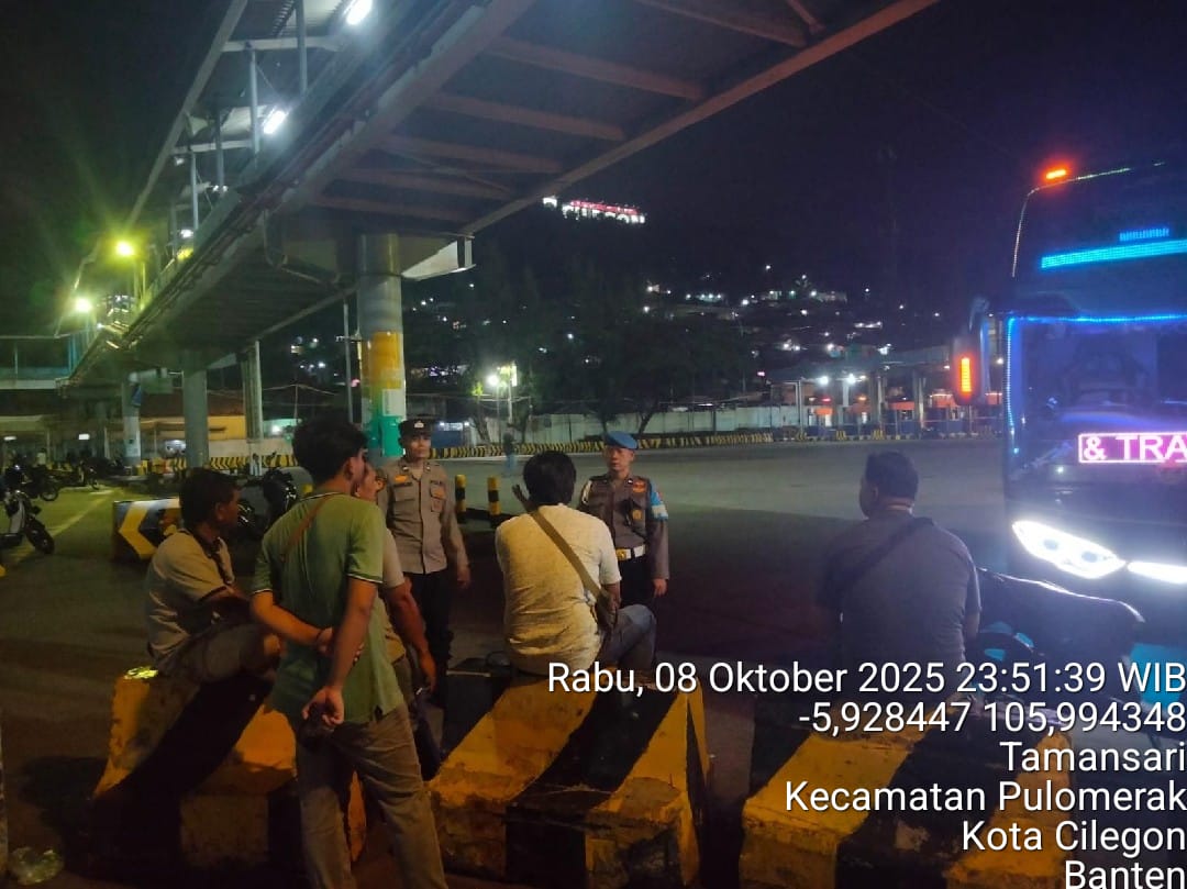 Cilegon - Personil Polsek Kskp Merak Polres Cilegon melaksanakan patroli di kawasan pelabuhan merak memberikan rasa aman dan damai, Kamis (09/10/2025)