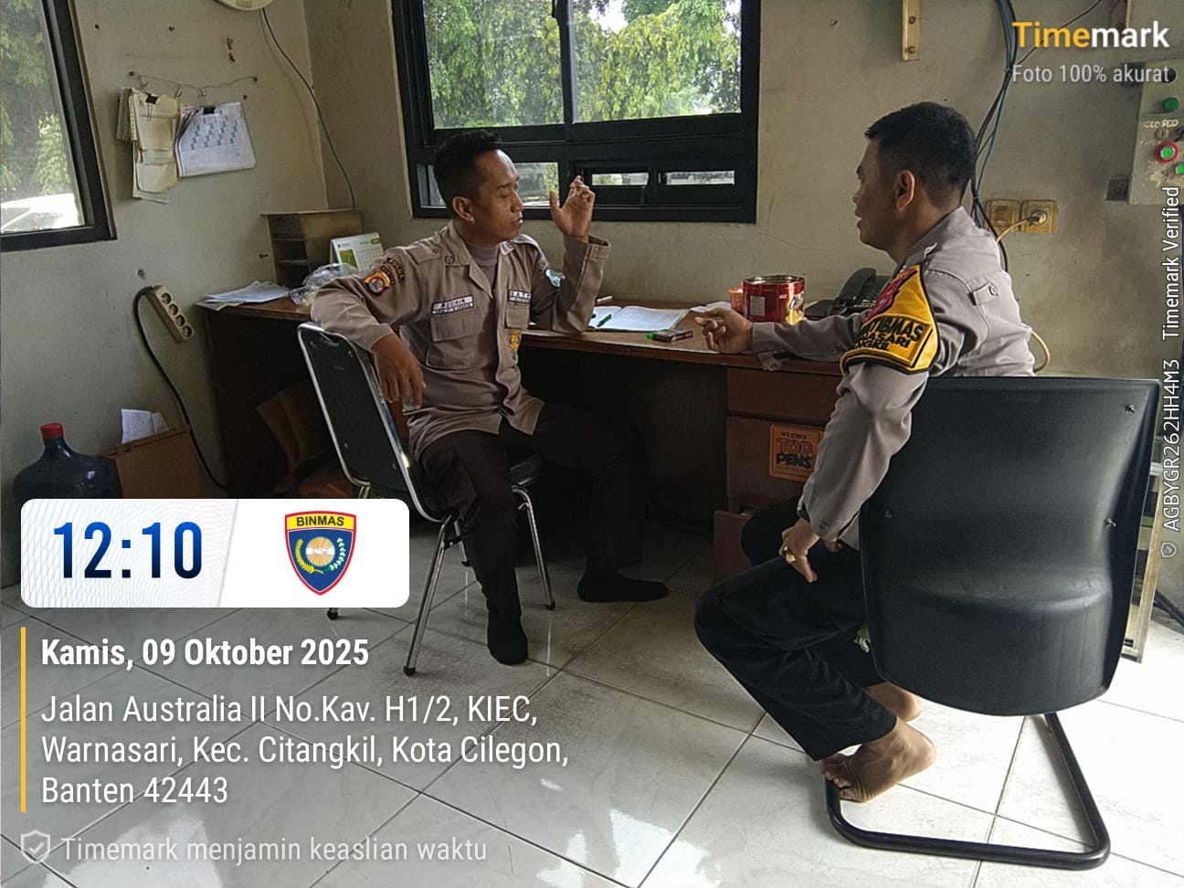 Cilegon - Demi Menjaga keamanan Daerah Hukum Polsek Ciwandan agar tetap kondusif, Personil Polsek Ciwandan Polres Cilegon Polda Banten Melakukan kegiatan sambang kamtibmas Dan Patroli Bersama Security, Kamis (09/10/2025).