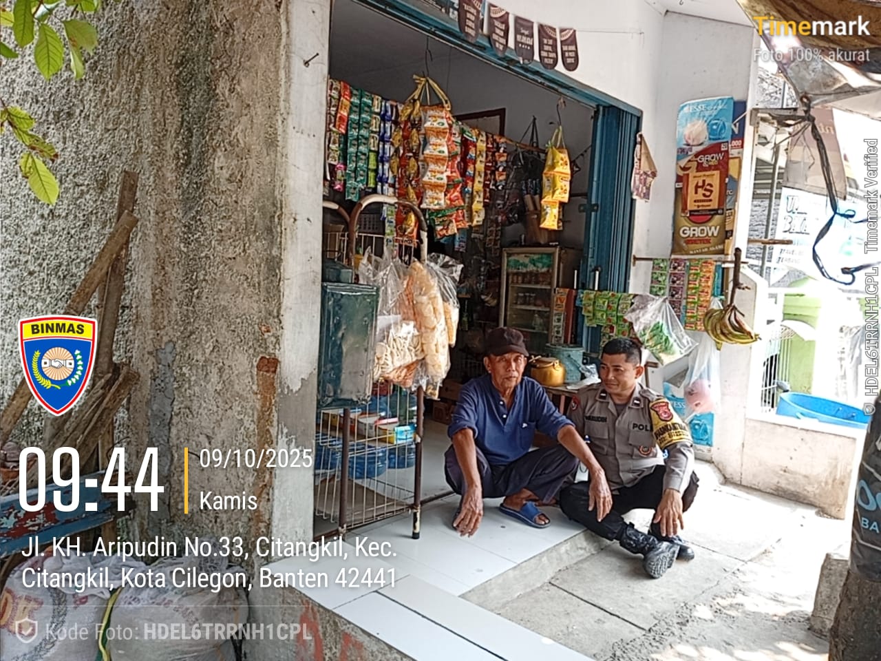 Cilegon - Bhabinkamtibmas Polsek Ciwandan Polres Cilegon Polda Banten melaksanakan kegiatan Sambang Kamtibmas ke warung sembako yang ada di lingkungan Kelurahan Citangkil Kecamatan Citangkil Kota Cilegon, Kamis (09/10/2025).