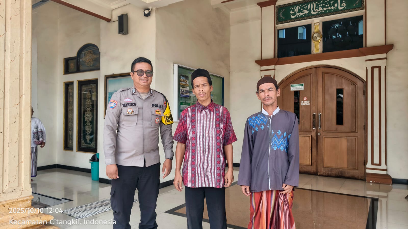 Cilegon - Dalam Rangka Implementasi Program Kapolda Banten Yaitu Sholat Jum’at Keliling Dan Berjama’ah Serta Memakmurkan Masjid, Bhabinkamtibmas Polsek Ciwandan Polres Cilegon Polda Banten Sholat Berjama’ah dan Bersilaturahmi Bersama masyarakat sebagai upaya meningkatkan Ukhuwah Islamiyah dalam menjalin silaturahmi dan membangun komunikasi yang baik,Jum’at (09/19/2025).