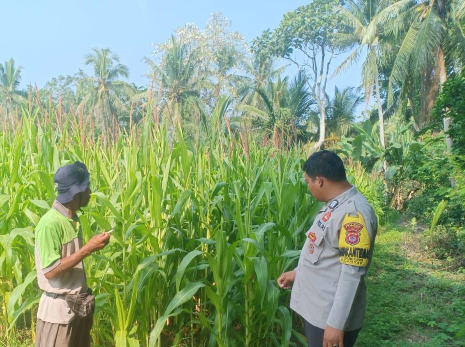 Dalam rangka mendukung program ketahanan pangan nasional dan swasembada pangan Bhabinkamtibmas Polsek Anyar melaksanakan kegiatan sambang dan monitoring lahan pertanian jagung di Desa Sindang Karya, Kecamatan Anyar, Kabupaten Serang. Sabtu (11/10)