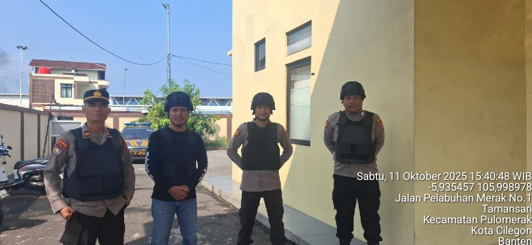 Cilegon - Personel piket jaga Polsek Kskp Merak Polres Cilgon Polda Banten melaksanakan siaga 1 Polsek pelaksanaan Sispam Mako oleh piket siaga dipimpin oleh Kspk Polsek Kskp Merak Polres Cilegon Polda Banten, Sabtu (11/10/2025).