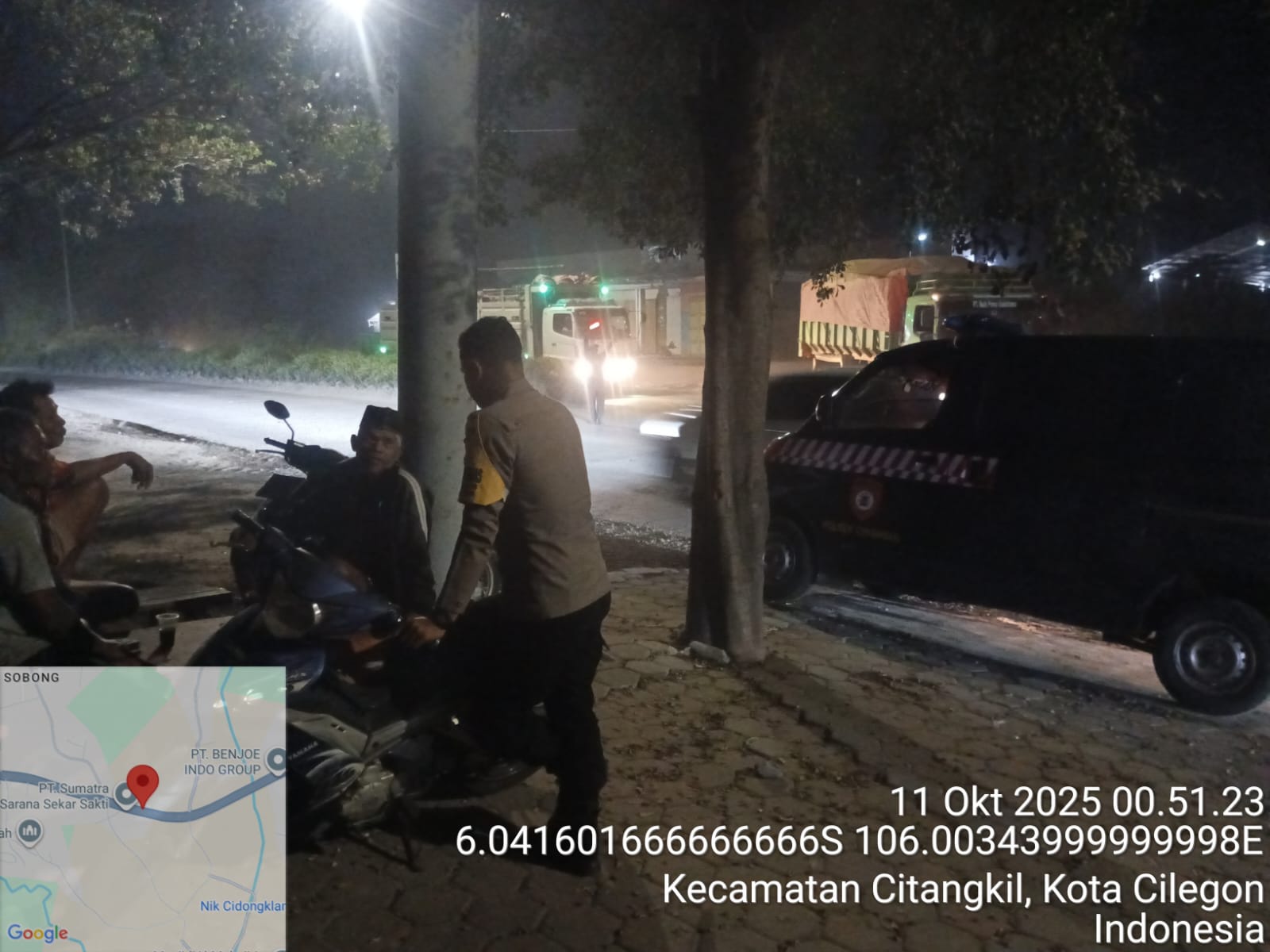 Cilegon - Guna Mencegah Gangguan kamtibmas dan Tindakan Kriminalitas Kejahatan Jalanan,Personil Polsek Ciwandan Polres Cilegon Polda Banten Sampaikan Pesan-Pesan Kamtibmas Kepada Sopir Angkutan Barang, Sabtu (11/10/2025).