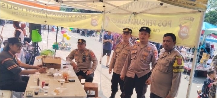 Anggota Polsek Purwakarta melaksanakan pengamanan kegiatan Car Free Day (CFD) yang digelar di Jalan Kh.Yasin Beji, Komplek Perumahan KS, Purwakarta