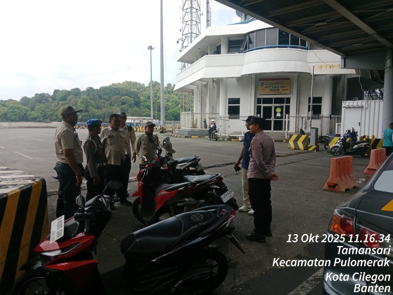 Cilegon - Personel Polsek Kskp Merak Polres Cilegon Polda Banten melaksanakan sambang dan patroli kawasan pelabuhan merak dalam rangka menjaga Harkamtibmas di Kawasan Pelabuhan Merak, Senin (13/10/2025).