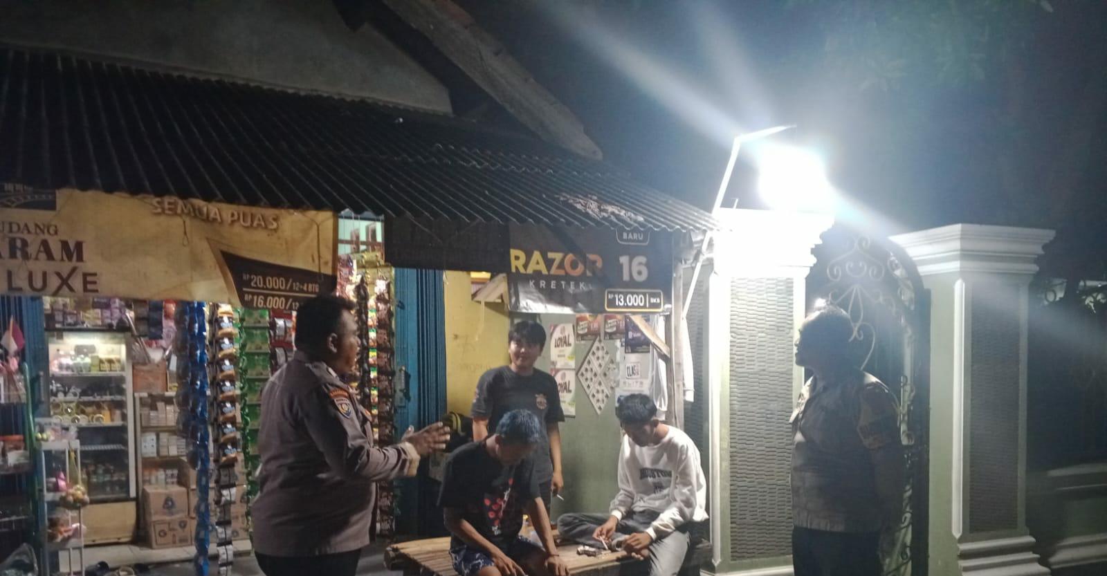 Bhabinkamtibmas menyambangi warga yang sedang duduk-duduk santai dan ngobrol , pada kesempatan yang baik tersebut Bhabinkamtibmas menyampaikan pesan-pesan kamtibmas dan Mengajak masyarakat untuk meningkatkan kewaspadaan serta untuk bersama-sama ikut serta menjaga keamanan lingkungan guna mencegah terjadinya gangguan kamtibmas.