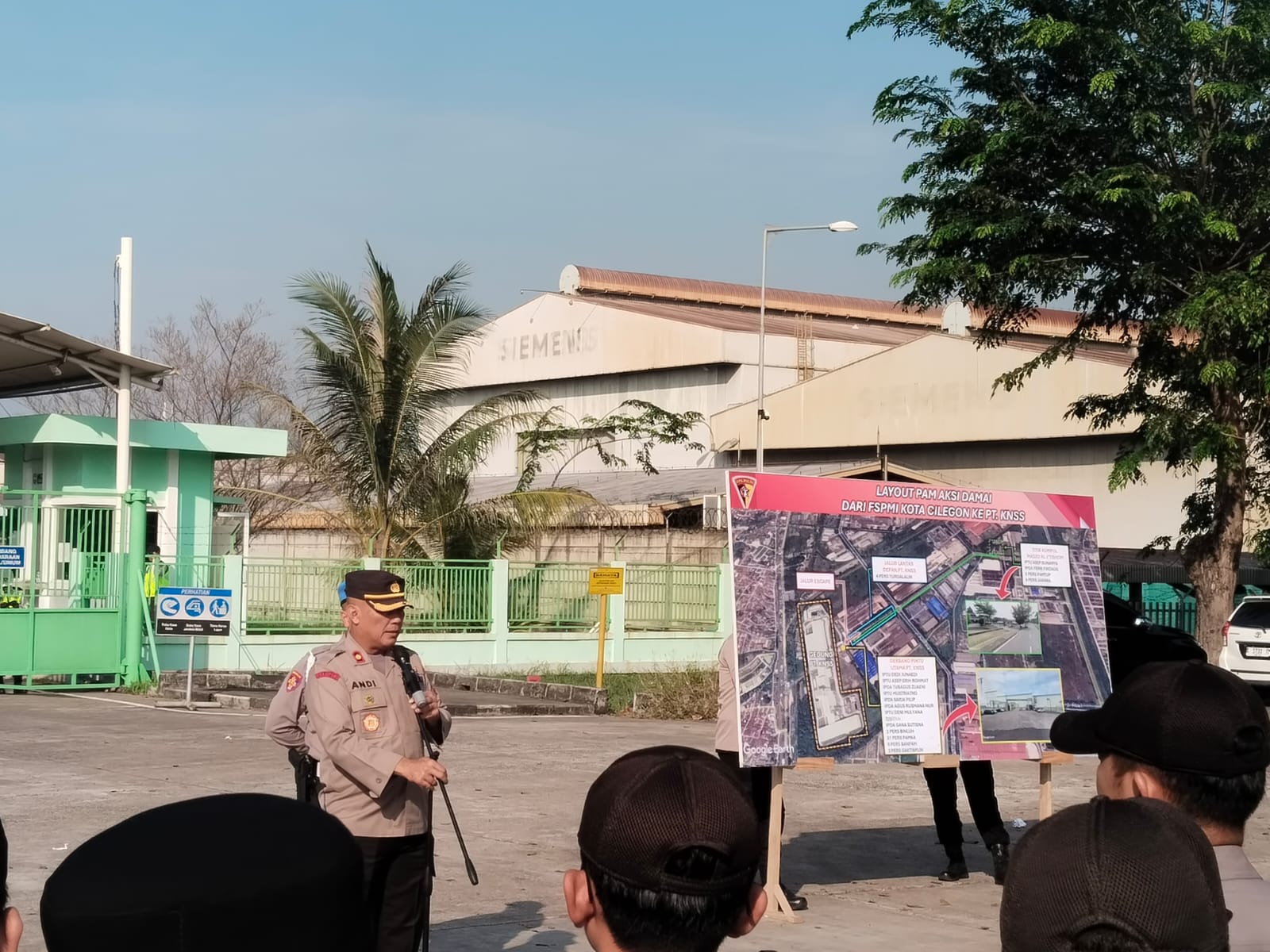 Kapolres Cilegon AKBP Dr. MARTUA RAJA TARIPAR LAUT SILITONGA, S.H., S.I.K., M.Si, melalui Kabagops AKP CHOIRUL ANAM, S.H., M.H., M.Si, menyampaikan bahwa pihak kepolisian telah berkoordinasi dengan panitia aksi serta manajemen PT. KNSS guna mengantisipasi potensi gangguan keamanan dan menjaga situasi tetap damai.