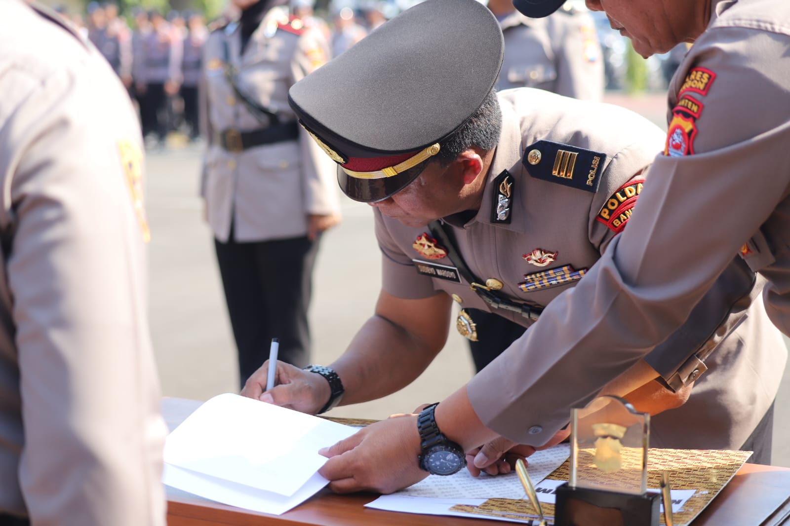 Pejabat yang melaksanakan serah terima jabatan yaitu Kompol Bhakti Yasa Saputri, S.H., M.H., yang menyerahkan jabatan Kabag SDM kepada Kompol Entang Cahyadi, S.H., M.A.; Kompol Chotijah, S.H., menyerahkan jabatan Kabag Log kepada AKP Sudibyo Wardoyo, S.H., M.M.; serta AKP Hardi Meidikson Samula, S.I.K., M.H., menyerahkan jabatan Kasat Reskrim kepada AKP Yoga Tama, S.Tr.K., S.I.K., M.Sc.