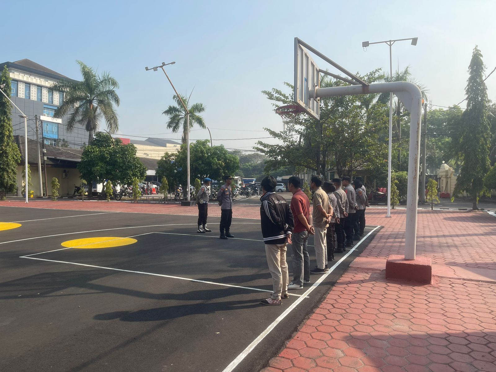 Cilegon,Polres Cilegon Polda Banten Pada Minggu/19/10/2025 Pukul 08.00 Wib,Aipda Emi Prasetyo selaku personil siwas Polres Cilegon Pengechekan kehdiran anggota yang sedang  melaksanakan kegiatan apel peleton kerangka  di lapangan apel Polres Cilegon.