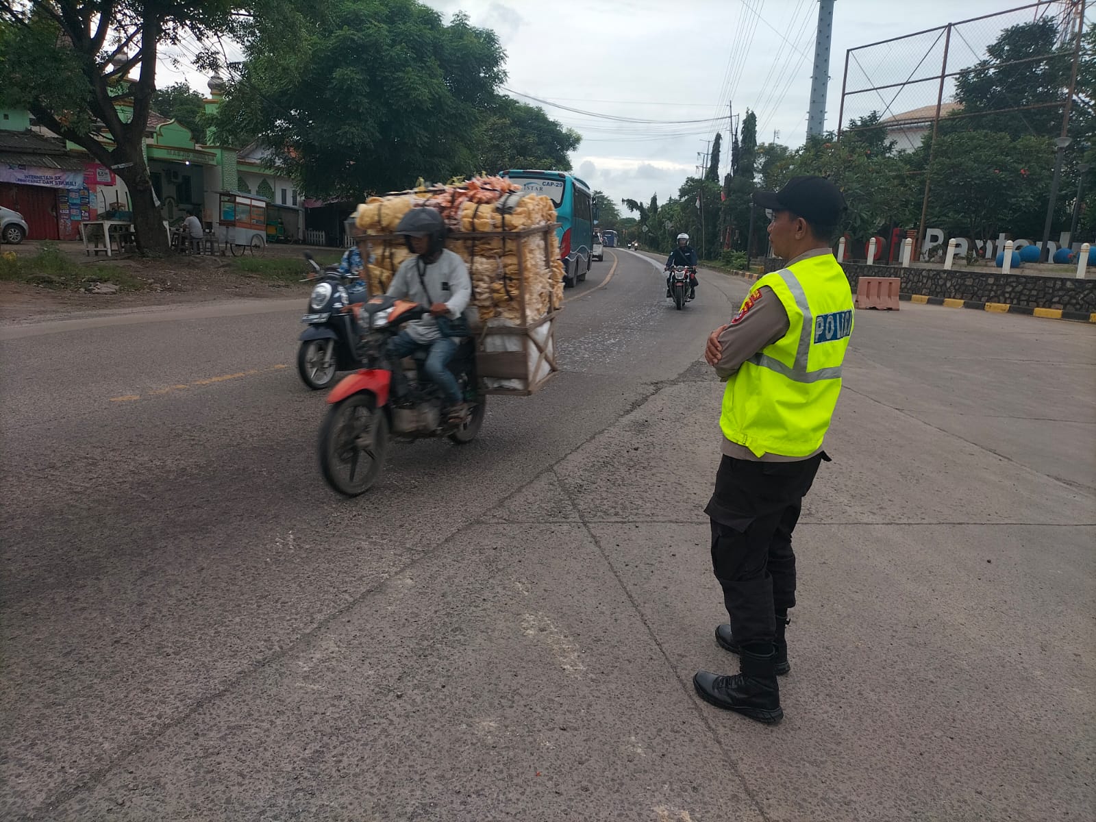 Kapolres Cilegon AKBP Martua Raja Taripar Laut Silitonga Melalui Kapolsek Kskp Banten Polres Cilegon AKP Fredo Leonard menyampaikan Laksanakan Pengamanan Sesuai plotinganya lakukan Pengaturan Supaya Arus Lalu Lintas tetap Berjalan lancar dan Pastikan tidak ada hambatan.