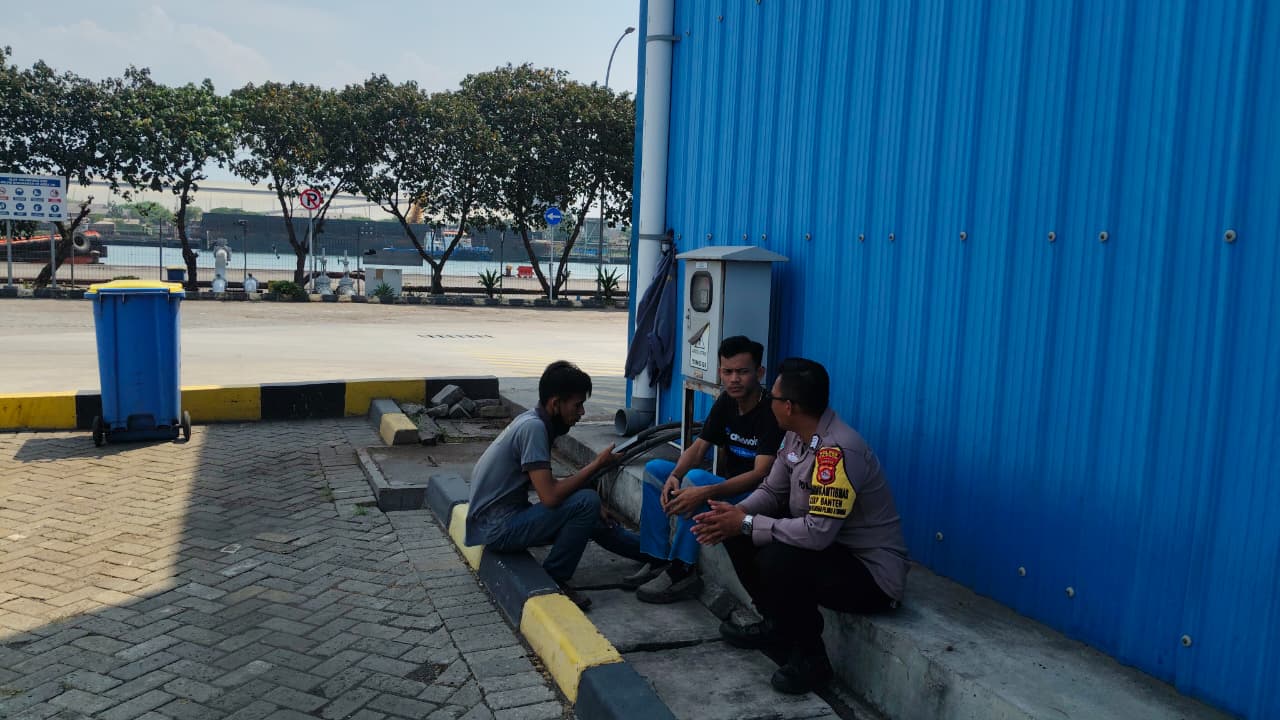 Jalin Silaturahmi, Personil Bhabinkamtibmas Pelabuhan Polsek KP Banten berbincang dengan Buruh Pelabuhan