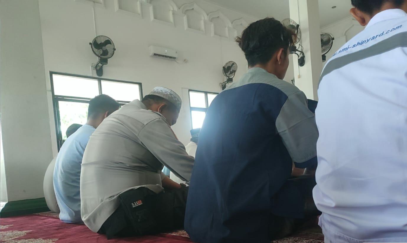 Bripka Bambang bersama Bripka Leo Polsek Bojonegara Usai Sholat Jum’at Berjama’ah dan Memakmurkan Masjid Dialogis Bersama Masyarakat dan Sosialisasi Call Center 110