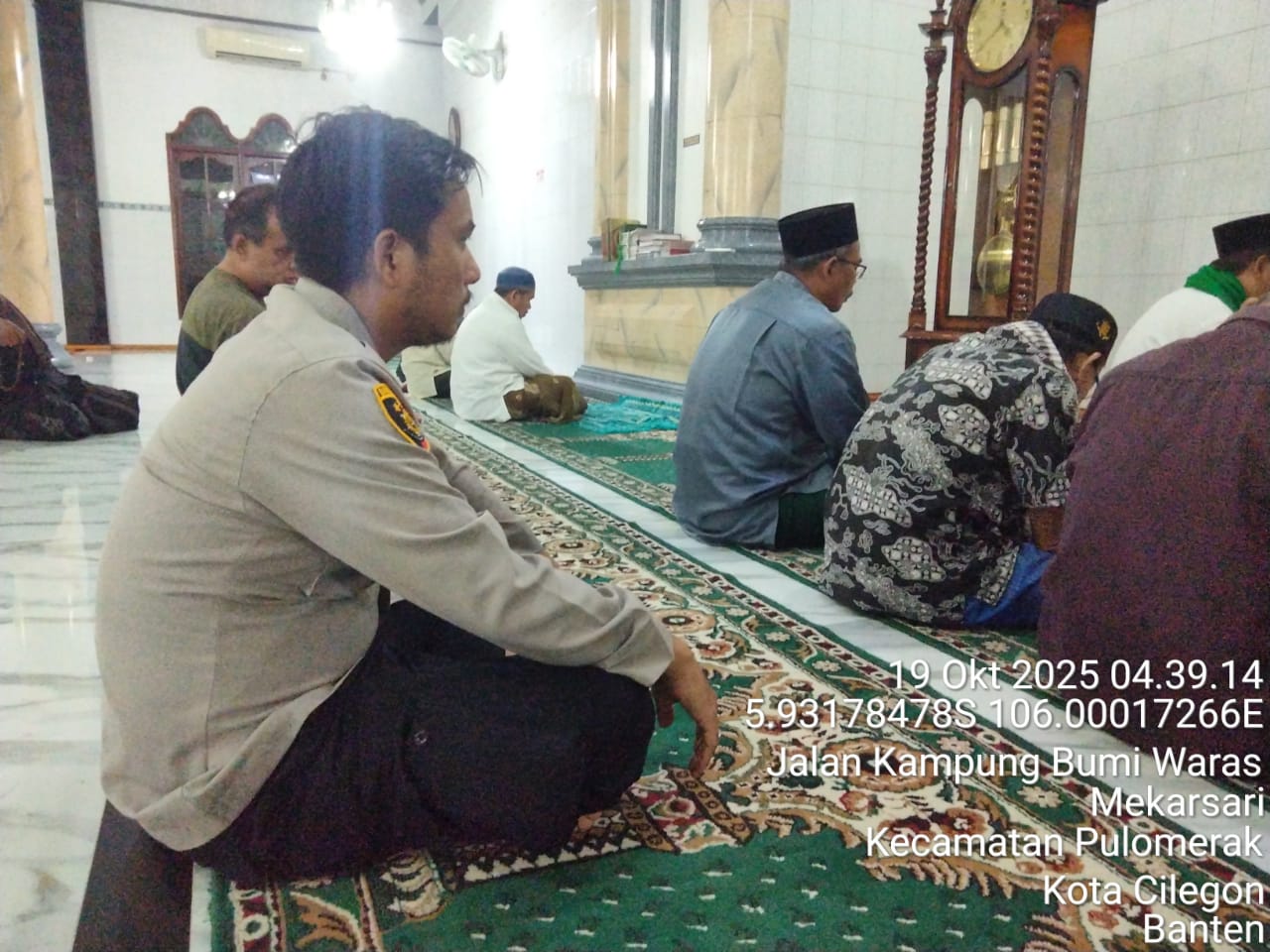 Cilegon – Personil Kskp Merak Polres Cilegon Polda Banten menggelar kegiatan Pembinaan Rohani dengan shalat subuh keliling di Masjid Yang ada Di Daerah hukum Polsek Kp Merak Polres Cilegon Polda Banten, Minggu (19/10/2025).