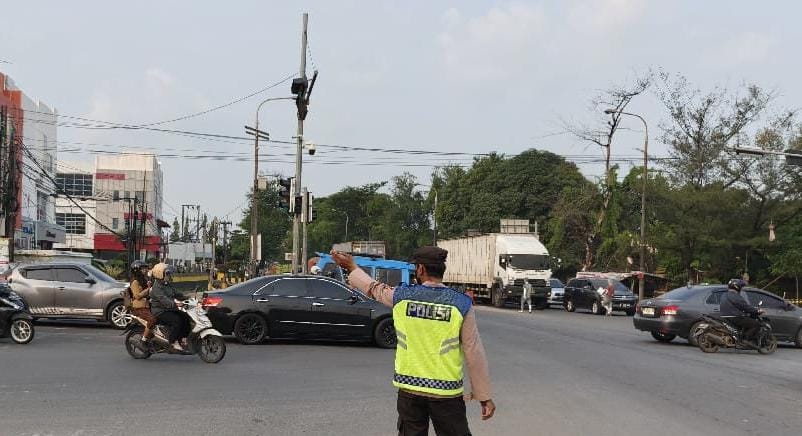 Cilegon - Pelayanan Kepada Warga Masyarakat dan Guna menciptakan situasi lalu lintas yang aman, tertib dan lancar, Personel Polsek Cibeber Polres Cilegon Polda Banten secara rutin melaksanakan pengaturan lalu lintas di sekitar Traffic Light PCI kota Cilegon.