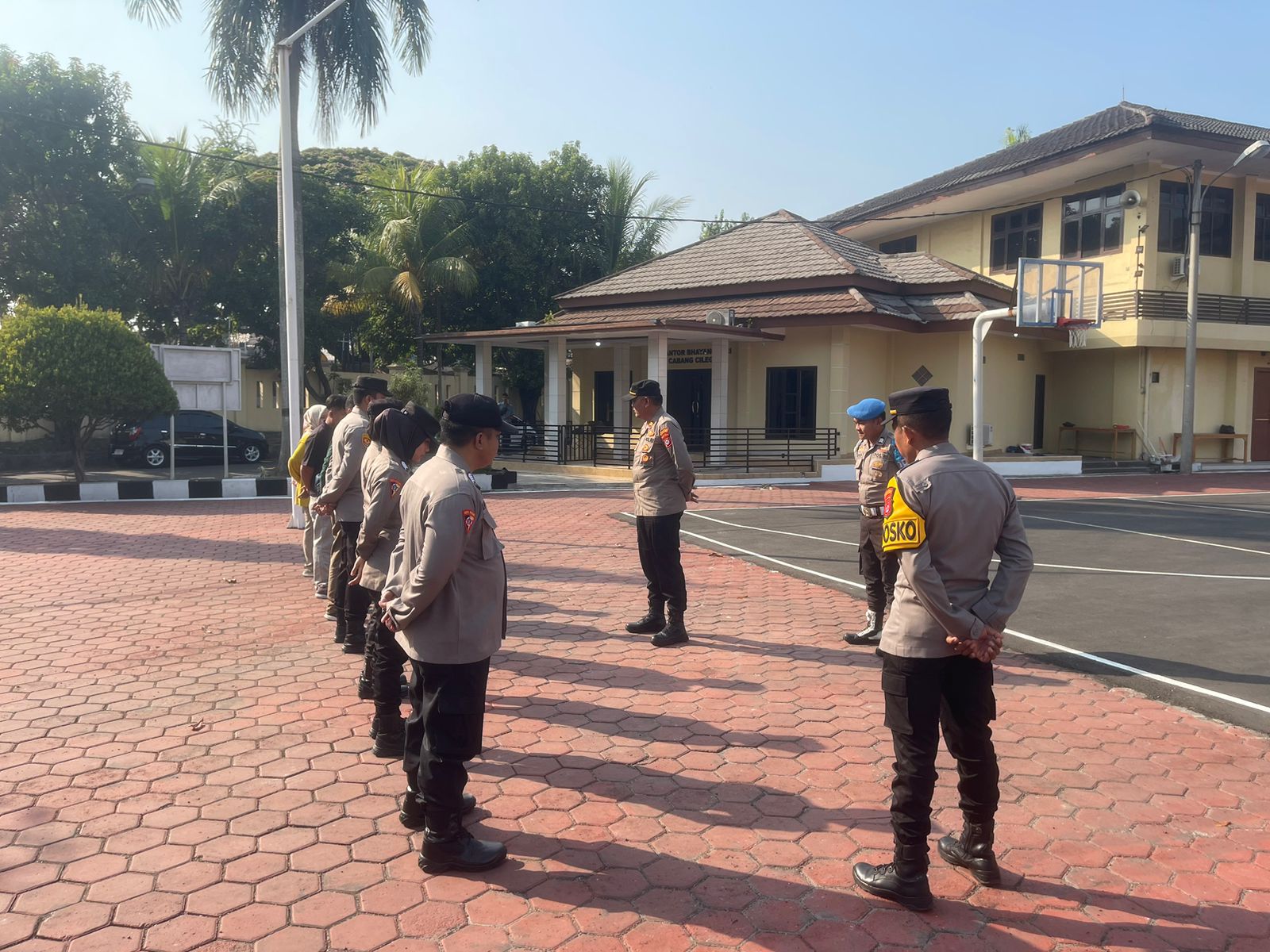 Anggota sium Polres Cilegon , tapil dalam Pellaksanaan rangka, kegiatan Apel ton Kerangka. Cilegon - Polres Cilegon Polda Banten - sium Polres Cilegon melaksanakan Apel Kerangka di Lapangan Apel Satya Haprabu Polres Cilegon Guna menunjukan kesiap siagaan pelayanan kepada masyarakat, sabtu (8/11/2025) Pukul 08.00 Wib. Kabag SDM Polres Cilegon selalu mengingatkan “Apel kerangka Penting untuk di laksanakan sebagai bentuk ke siap siagaan kita untuk hadir di tengah tengah masyarakat untuk melayani masyarakat sebagai mana tugas pokok Anggota Polri agar tericiptanya Harkamtibnas khususnya di Wilayah Kota Cilegon."Ujarnya Kegiatan ini sudah termasuk rutinatas personel Polres Cilegon menyadari kerawanan kejadian di akhir pekan kami selalu memberikan himbauan ke pada masyarakat untuk selalu hati hati dan waspada dalam menjalankan aktivitas di akhir pekan. Selain dari pada itu anggota yang terlibat apel tersebut melakukan pengaman di tempat ibadah guna kelancara dan ke amanan acara ibadah tersebut."Tutupnya (BL)