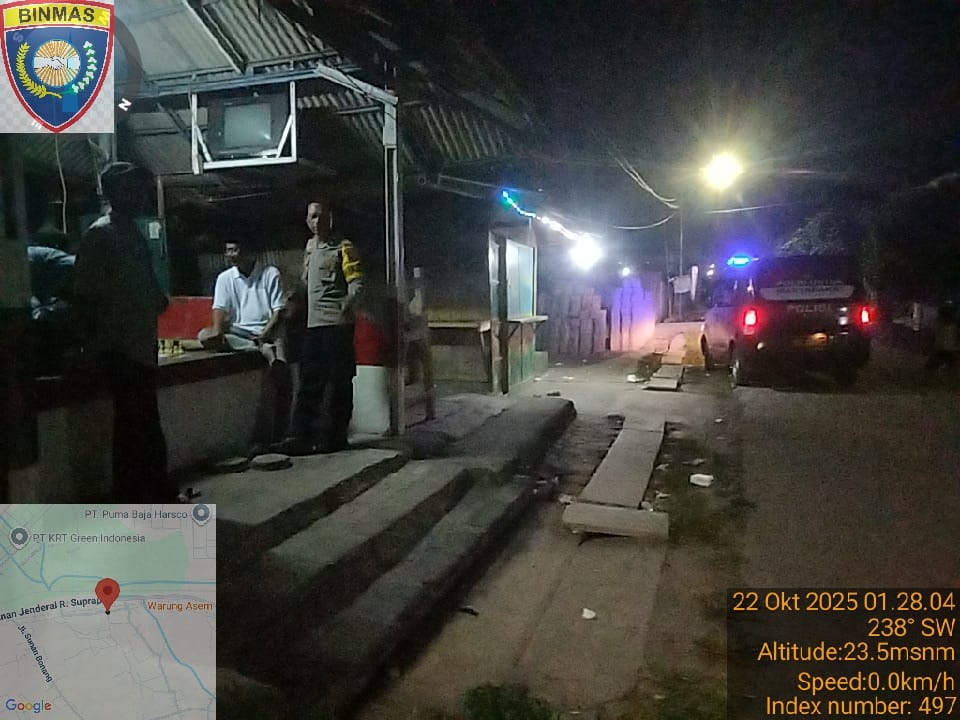 Cilegon - Guna Mencegah Terjadinya Tindak Kejahatan dan Menggiatkan Patroli Pos Ronda Siskamling di Pemukiman warga masyarakat,Personil Polsek Ciwandan Polres Cilegon Polda Banten Mengajak dan memantau pelaksanaan ronda siskamling di lingkungan daerah hukum Polsek Ciwandan, Rabu (22/10/2025).