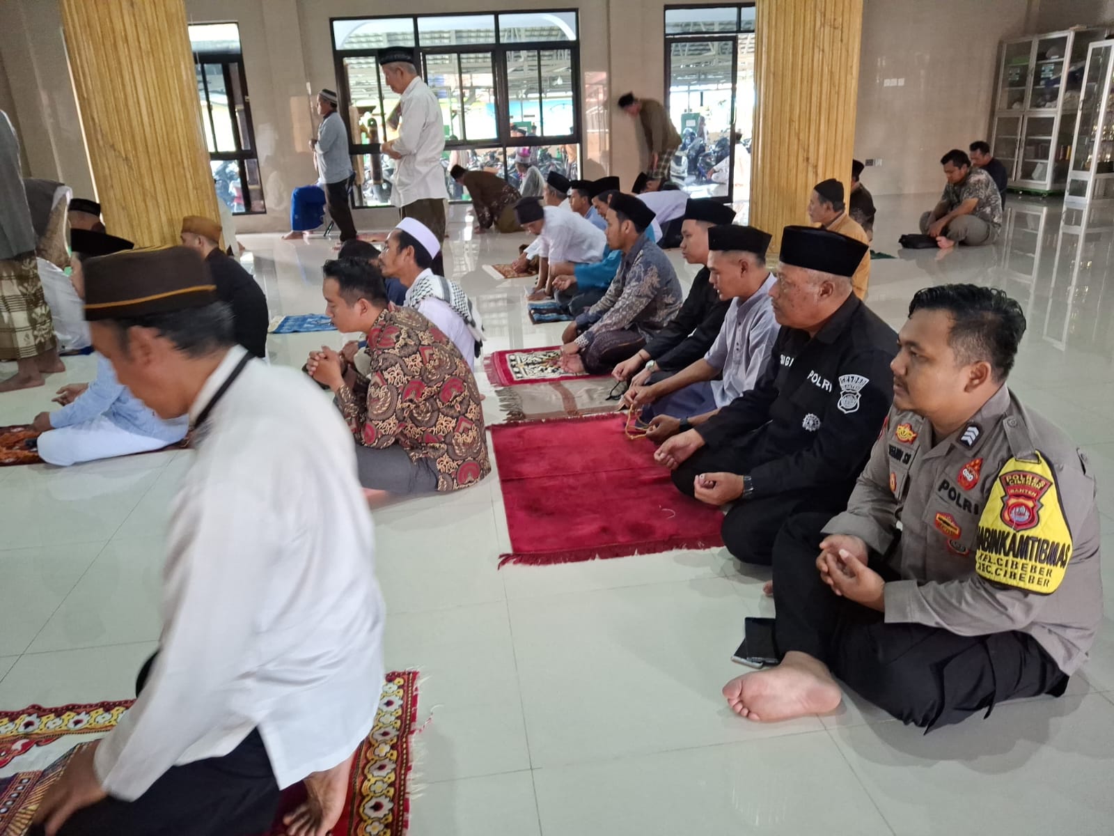 Seperti Tadi Saya Melaksanakan Kegiatan Jumat keliling di Masjid Nurul Ibad Link Sambirata Kelurahan Cibeber Kecamatan Cibeber Kota Cilegon setelah pelaksanaan kegiatan sholat kami laksanakan bincang bincang dengan masyarakat guna menciptakan situasi Kamtibmas diwilayah kecamatan Cibeber Kota Cilegon. Ujar Akp Sigit Dermawan.