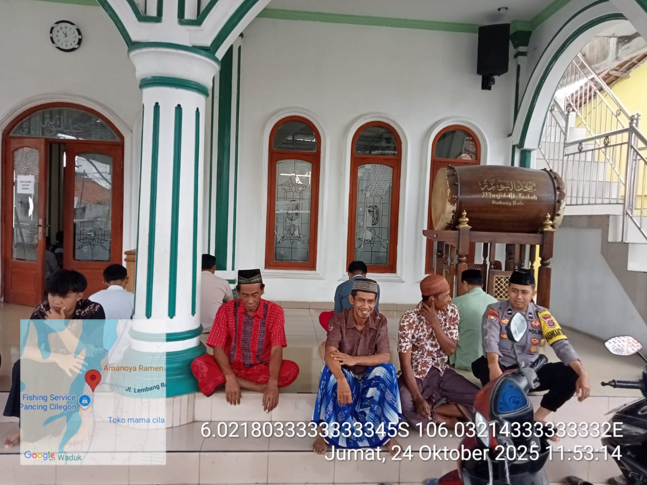 Cilegon - Bhabinkamtibmas Polsek Ciwandan Polres Cilegon Polda Banten Selesai melaksanakan Sholat secara berjama’ah dan Sampaikan Himbauan-himbauan Kamtibmas Kepada Masyarakat Jama'ah Yang ada Dimasjid, Minggu (26/10/2025).