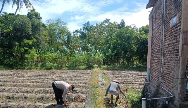 BHABINKAMTIBMAS KELURAHAN KEBONDALEM BANTU PETANI TANAMI LAHAN