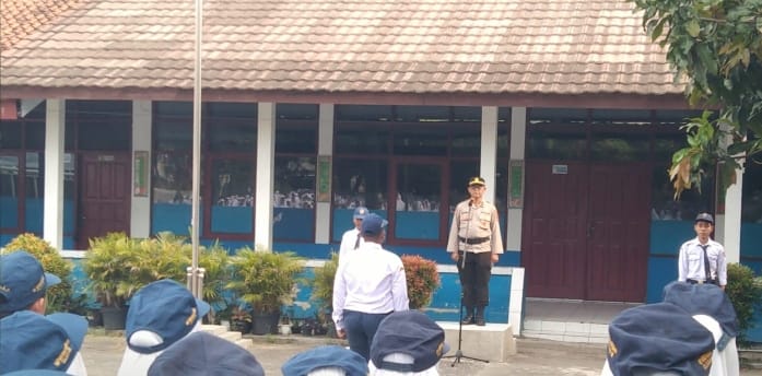 UPACARA BENDERA DI SMP MADINATUL HADID DI PIMPIN KANIT BINMAS