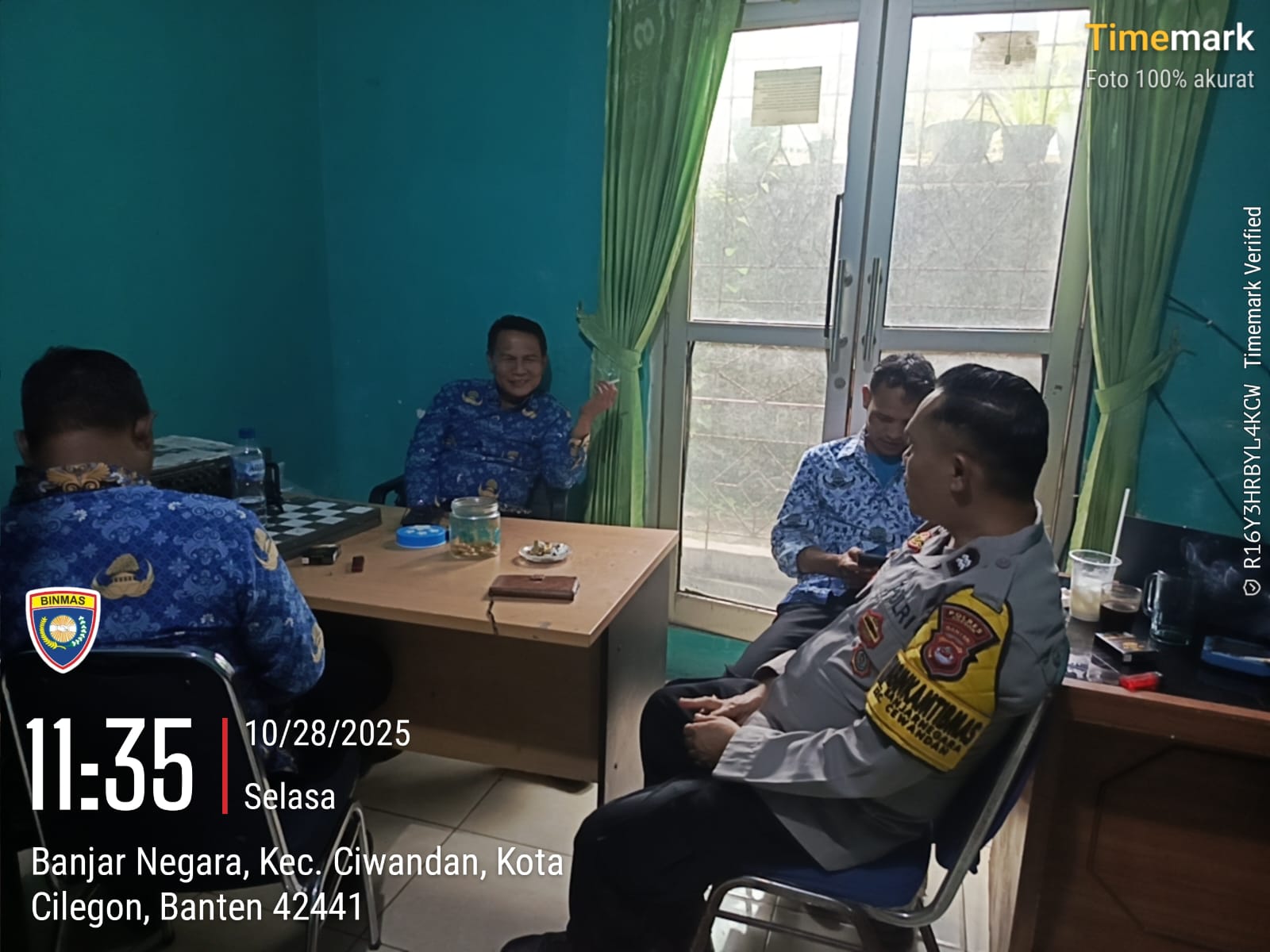 Cilegon - Dalam upaya memberikan rasa aman kepada masyarakat Bhabinkamtibmas Polsek Ciwandan Polres Cilegon Polda Banten melakukan upaya dalam mencegah gangguan kamtibmas,seperti melaksanakan giat sambang di kantor-kantor kelurahan  bertemu langsung dengan perangkat kelurahan, Selasa (28/10/2025).