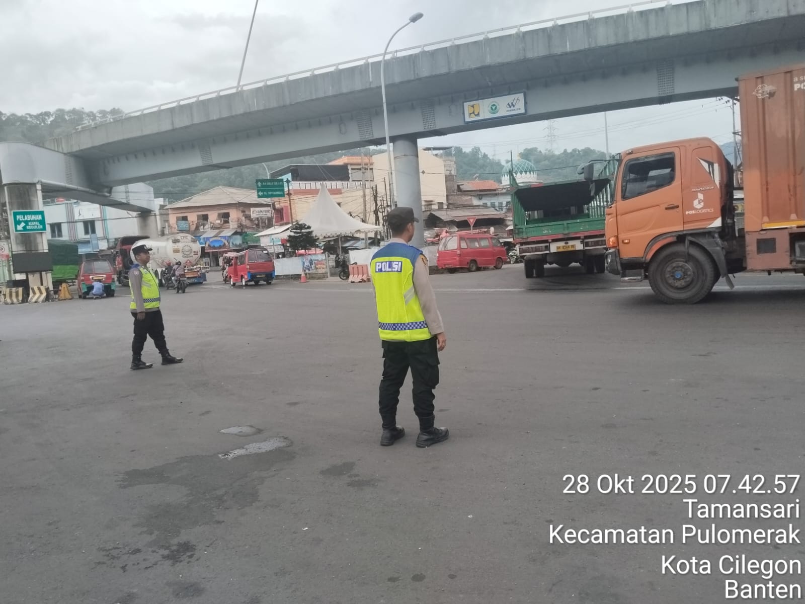 Cilegon - Dalam rangka peningkatan pelayanan prima kepada masyarakat, Kskp Merak Polres Cilegon Polda Banten melaksanakan pengaturan antrian R4 yang akan masuk ke Kapal Ferry di Pelabuhan Merak, Selasa (28/10/2025).