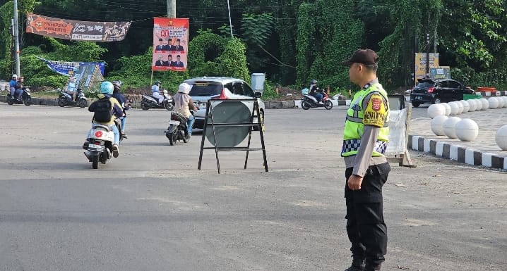 melaksanakan pengaturan lalu lintas pagi di beberapa persimpangan