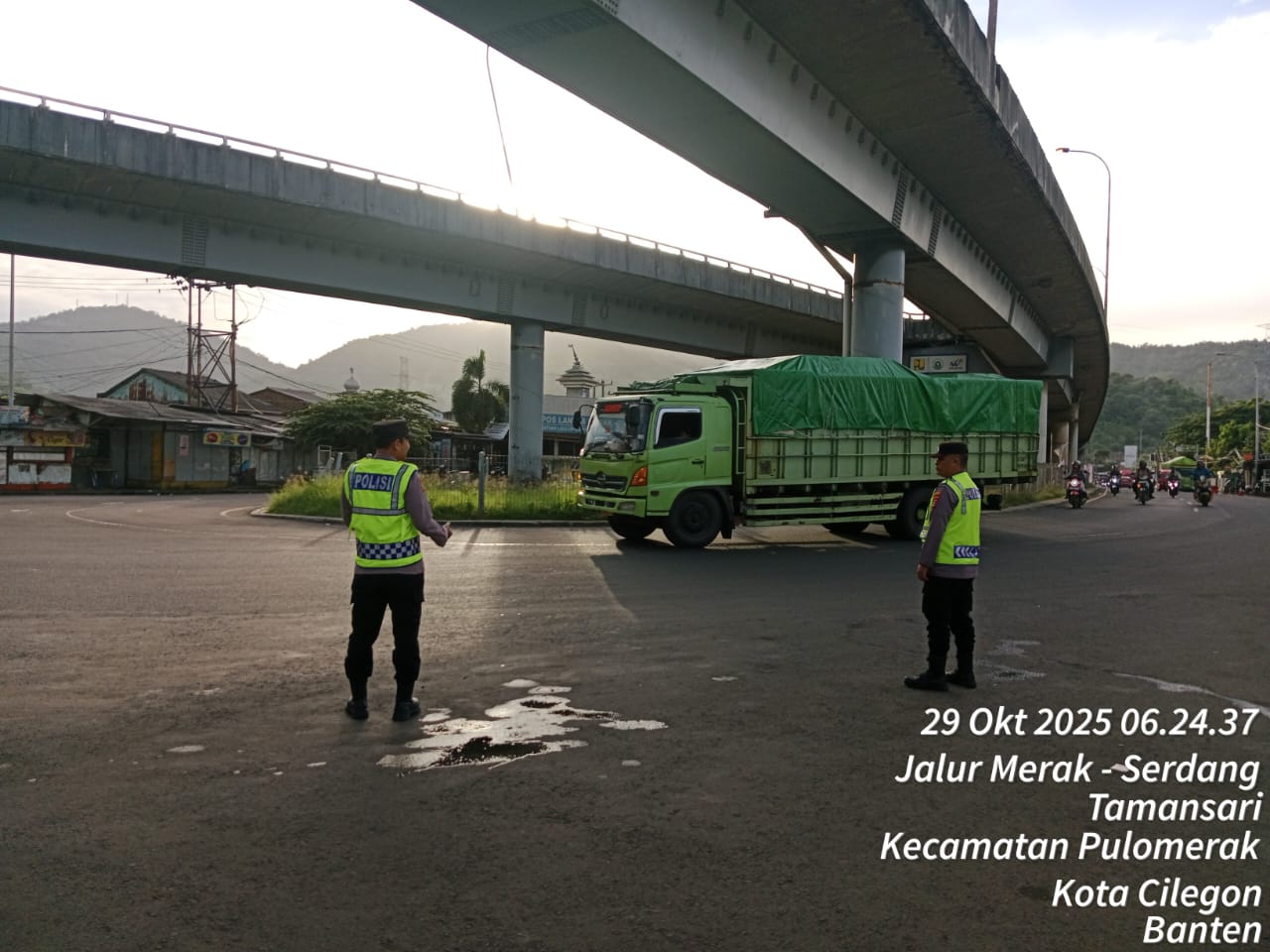 Kapolres Cilegon Polda Banten AKBP Martua Raja Taripar Laut Silitonga melalui Kapolsek Kskp Merak AKP Gusti Almasri P menyampaikan bahwa kegiatan pengaturan antrian ini adalah dalam rangka memberikan pelayanan kepada masyrakat yang akan menyebrang ke Bakauheni atau Sumatra melalui jalur laut dengan menaiki kapal Ferry.