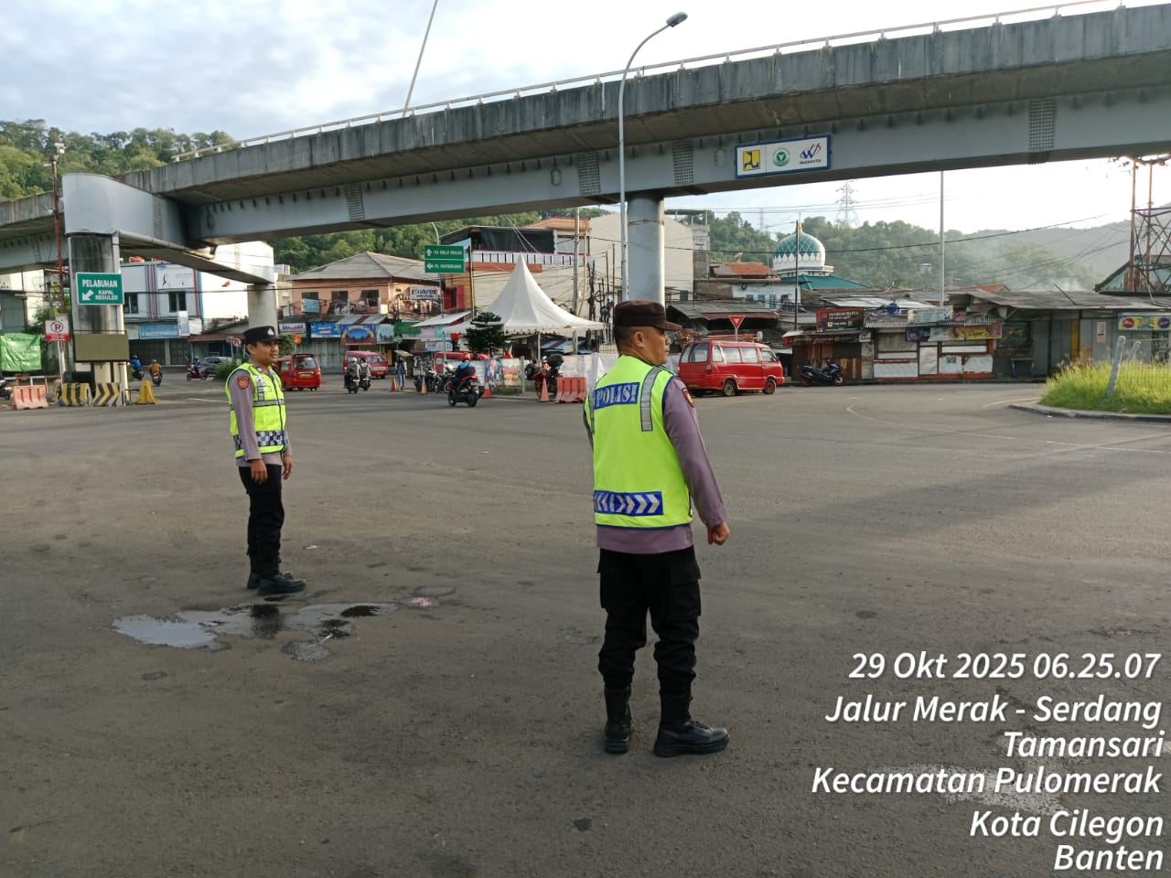 Polsek KSKP Merak Lakukan Pengaturan Lalu Lintas Demi Kenyamanan Pengguna Jasa Penyeberangan