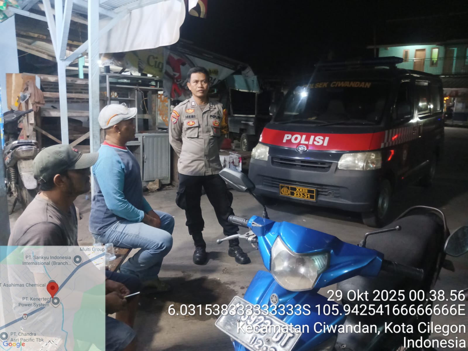 Cilegon - Guna mengantisipasi gangguan kamtibmas di Daerah hukum Polsek Ciwandan, Personil Polsek Ciwandan Polres Cilegon Polda Banten Selalu menggelar patroli malam Kedaerah Pada Jam Yang Dianggap Rawan hingga dini hari, Rabu (29/10/2025).