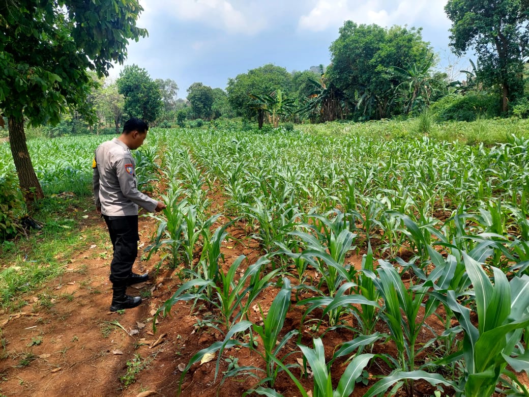 Bripka Bambang Pamungkas Bhabinkamtibmas ketahanan pangan monitoring tanaman tumbuh jagung petani binaannya