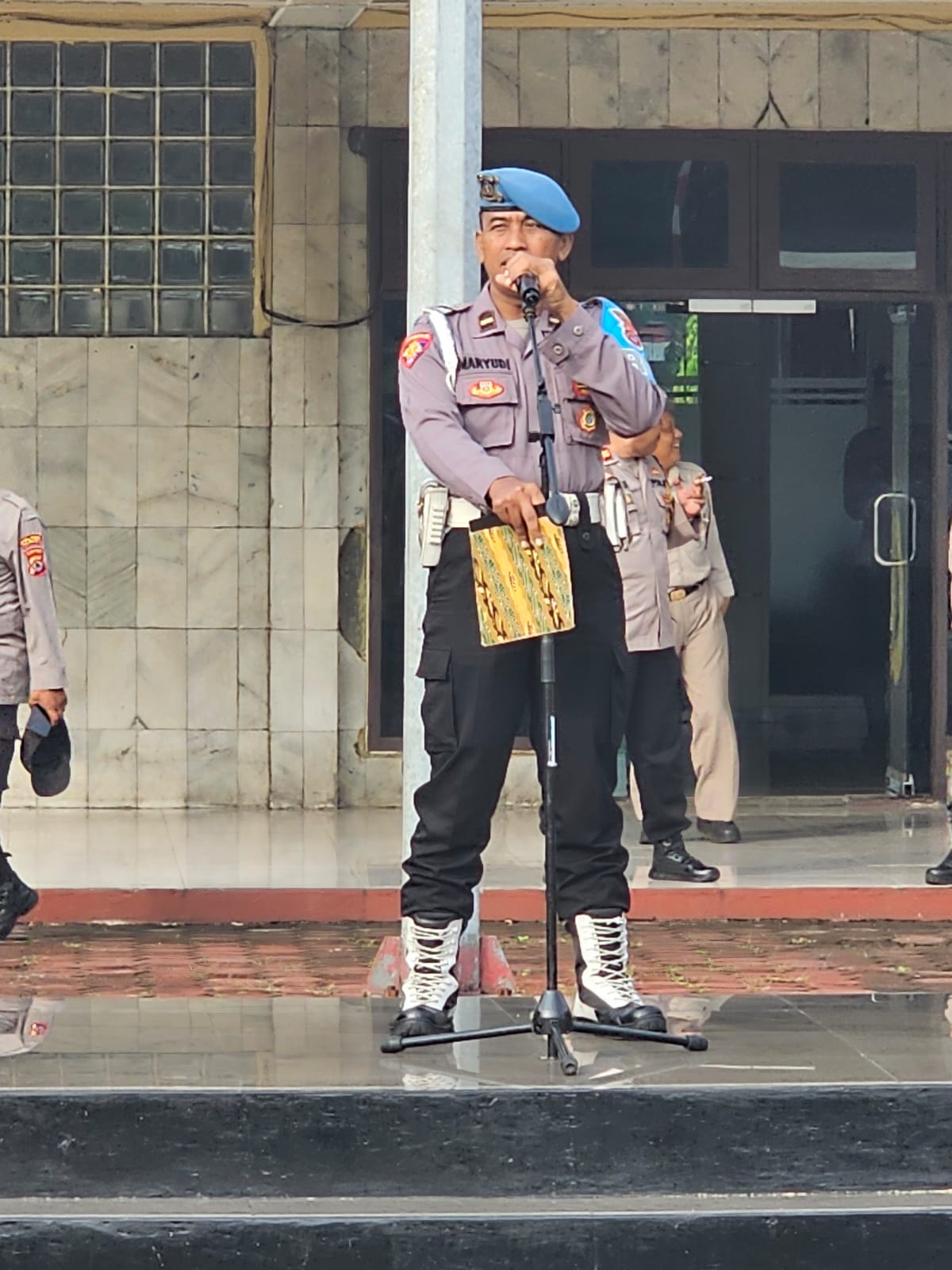 Ipda maryudi selaku kanit profos melakukan giat rutin pengechekan pada personil polres cilegon dan memeberi himbauan prihal kehadiran personil