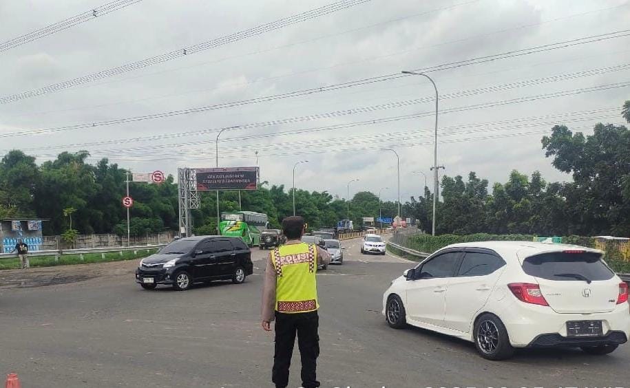 Cilegon - Pelayanan Kepada Warga Masyarakat dan Guna menciptakan situasi lalu lintas yang aman, tertib dan lancar, Personel Polsek Cibeber Polres Cilegon Polda Banten secara rutin melaksanakan pengaturan lalu lintas di sekitar Traffic Light PCI kota Cilegon.