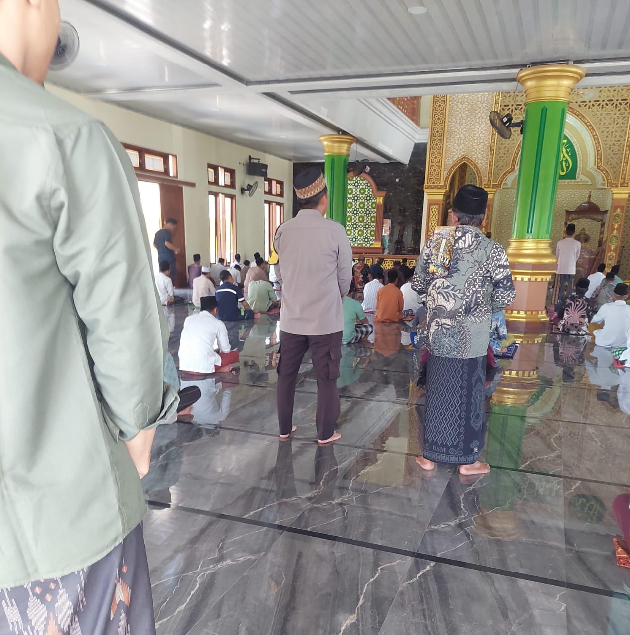Bripka Bambang bersama Brigadir Chairuman Berikan Rasa Aman Terhadap Jamaah yang Melaksanakan Ibadah Shalat Jumat