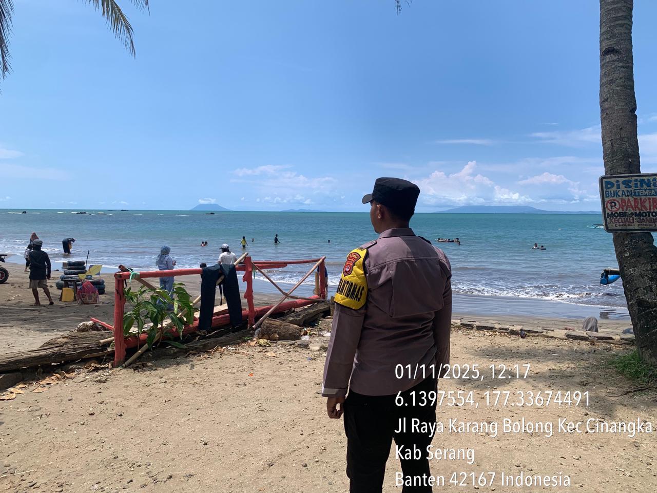 _*POLRES CILEGON*_ | Polsek Cinangka Polres Cilegon Polda Banten melaksanakan kegiatan patroli Serta memberikan Himbauan kepada pengunjung pantai yang berwisata dan Sambang kepada petugas penjaga pantai dan juga antisipasi harkamtibmas di Wilayah Hukum Polsek Cinangka Polres Cilegon Polda Banten, Sabtu (01/11/2025).