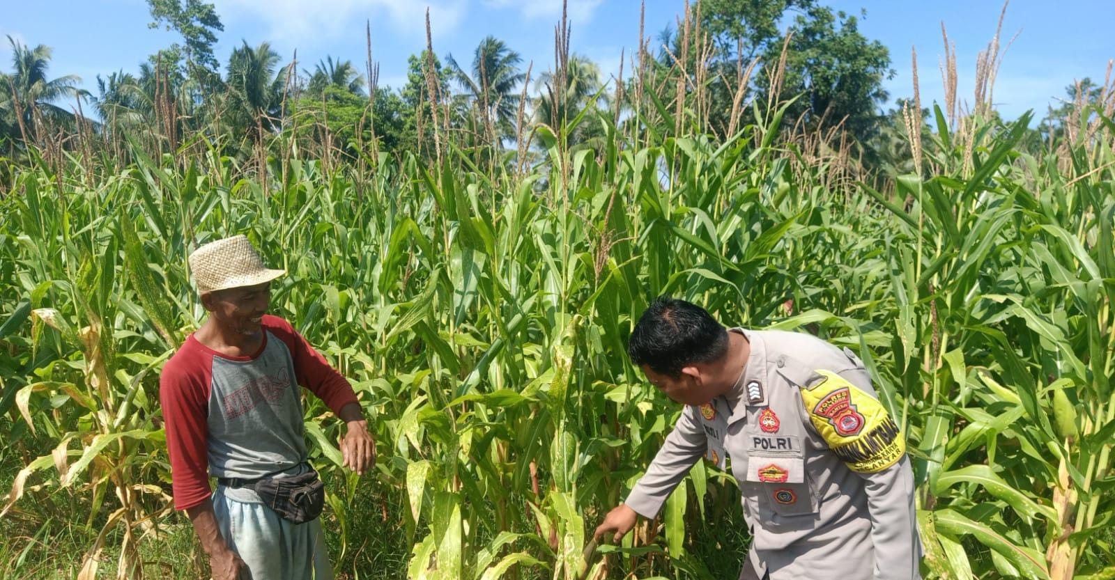 Kapolres Cilegon Polda Banten AKBP Dr. Martua Raja Taripar Laut Silitonga melalui Kapolsek Anyar Polres Cilegon Polda Banten Kegiatan yang dilakukan pada lahan jagung seluas kurang lebih 1 hektare milik Bapak H. Sukron, anggota Kelompok Tani Angsana II, ini merupakan bentuk sinergitas antara Polri dengan kelompok tani dalam mendukung kemandirian pangan masyarakat.