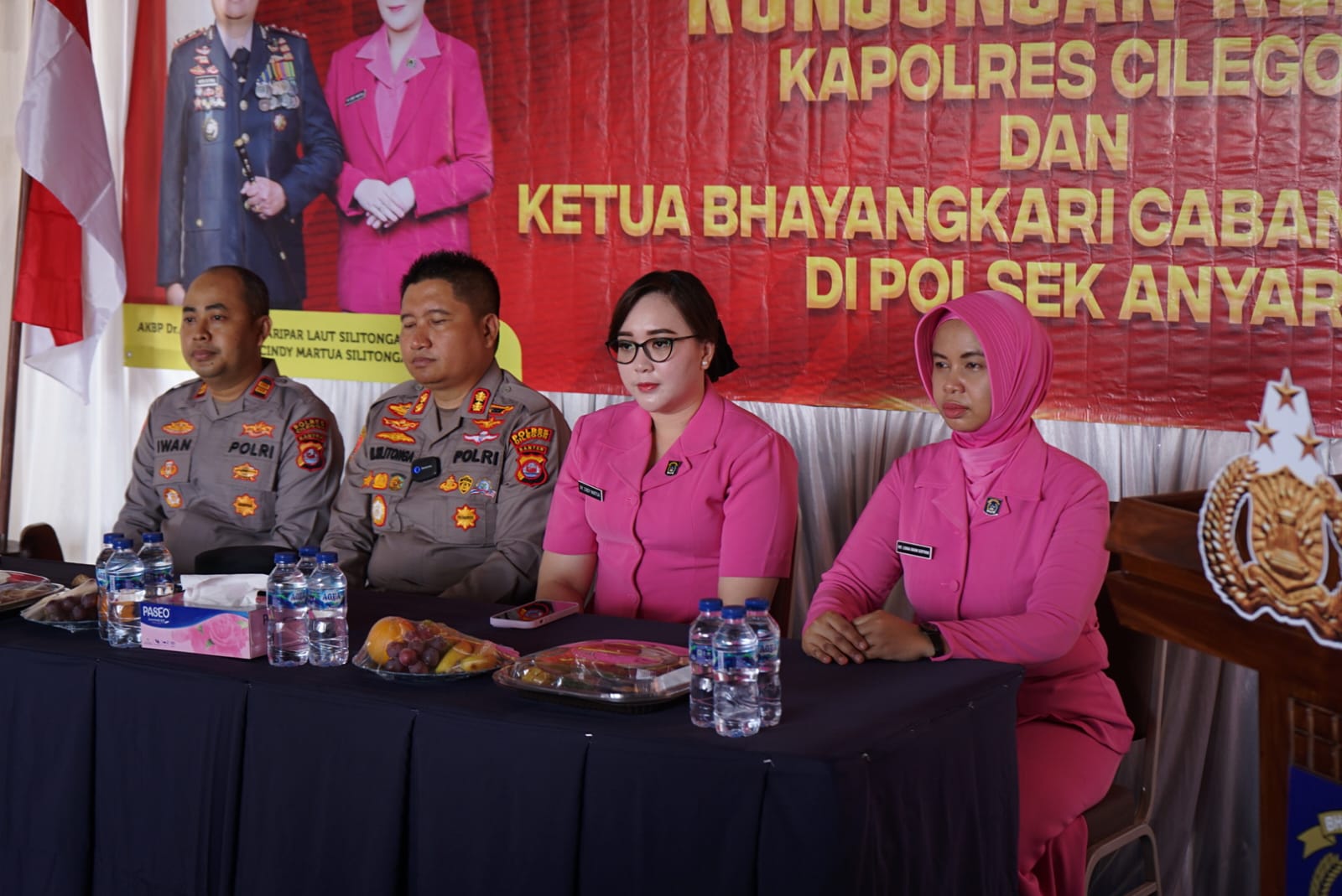 Kapolres Cilegon Polda Banten AKBP Dr. Martua Raja Taripar Laut Silitonga melalui Kapolsek Anyar IPTU Iwan Sofiyan Kunjungan ini merupakan bagian dari kegiatan rutin Kapolres beserta jajaran Bhayangkari dalam rangka meningkatkan sinergi, soliditas, dan semangat kerja personel di tingkat Polsek, sekaligus sebagai ajang silaturahmi dengan anggota.