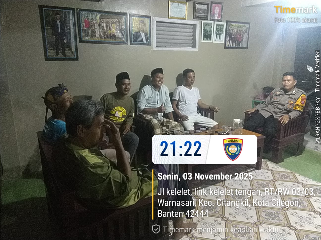Cilegon - Bhabinkamtibmas Polsek Ciwandan Polres Cilegon Polda Banten Lakukan Sambang Malam guna mengantisipasi aksi kejahatan pada daerah binaan dan memberikan rasa aman dan nyaman kepada warga binaan, Selasa (04/11/2025).