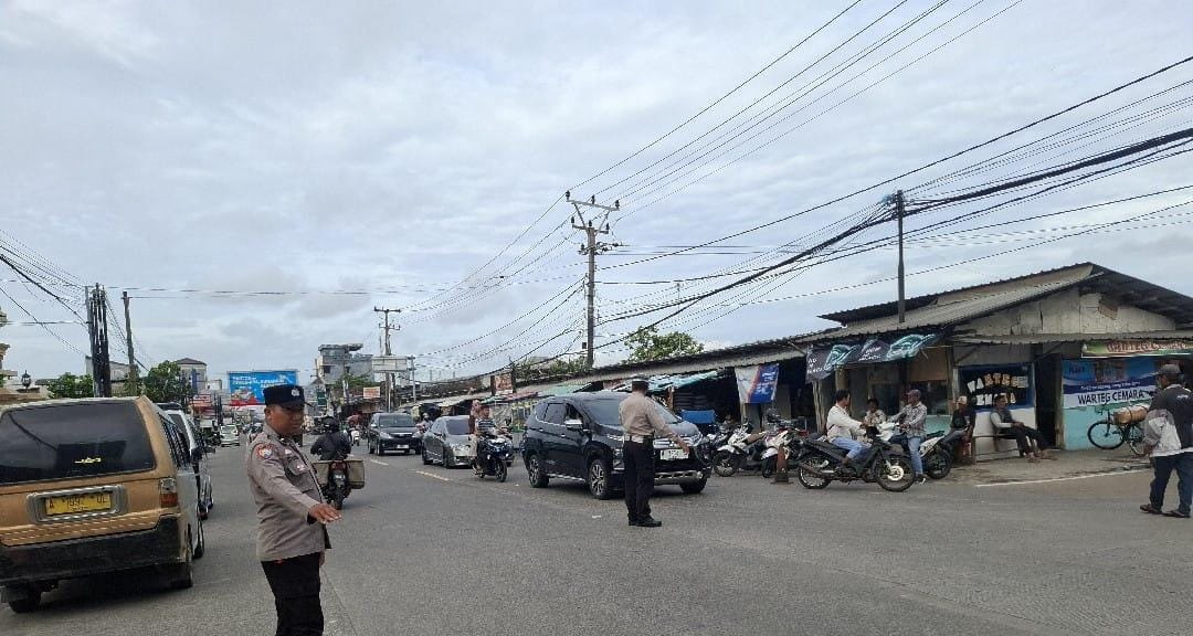 Lakukan Pengaturan Lalu Lintas Polsek Anyar Jalur Anyar - Cinangka Urai Kendaraan
